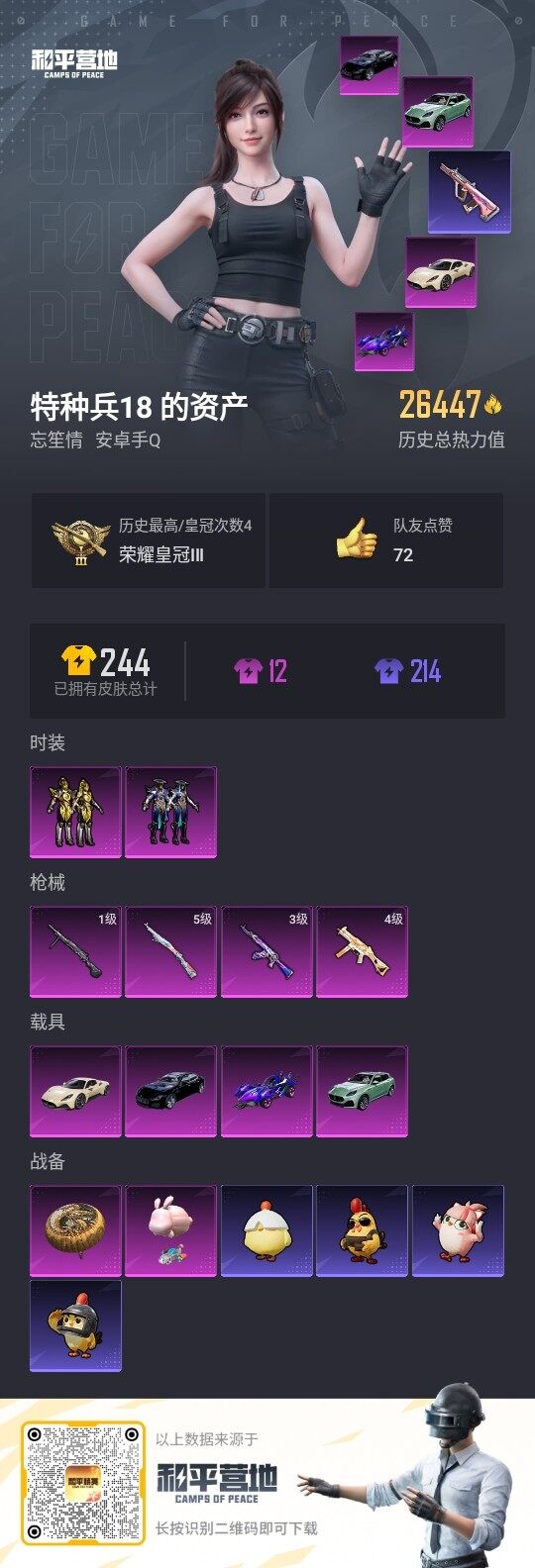 【店主推荐捡漏号!可直接换绑】安卓 手Q-2粉装-4特效枪-5载具-0粉色飞行器-26447热力值-1王牌印记-54套装-73枪皮【热门品类】:套装-龟仙人【粉色载具】:玛莎拉蒂MC20(星石白),玛莎拉蒂Quattroporte(夜幕蓝),玛莎拉蒂Grecale(薄荷绿),海龙奔腾,僚机-萌兔起飞【粉色套装】:粉装-碧穹智者,粉装-光明术士【粉色枪皮等级】:AKM-星际浪客(三级),UMP45