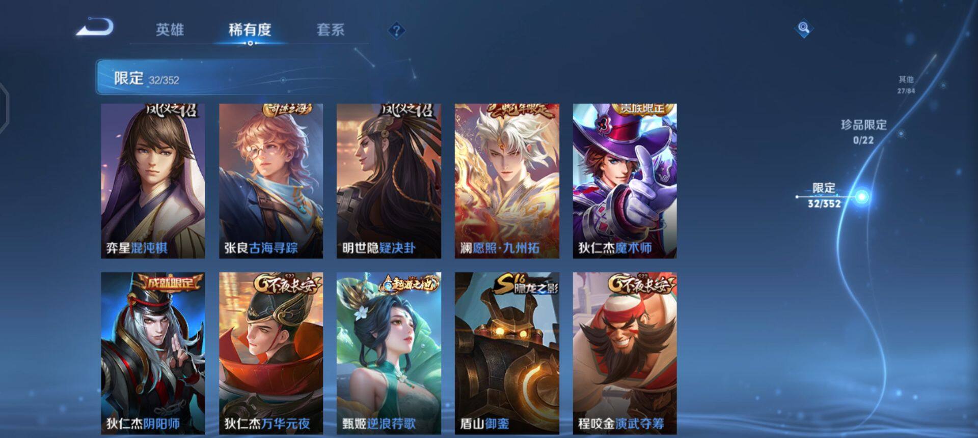 【限定皮肤】:狄仁杰阴阳师,赵云皇家上将,夏侯惇朔风刀,典韦穷奇