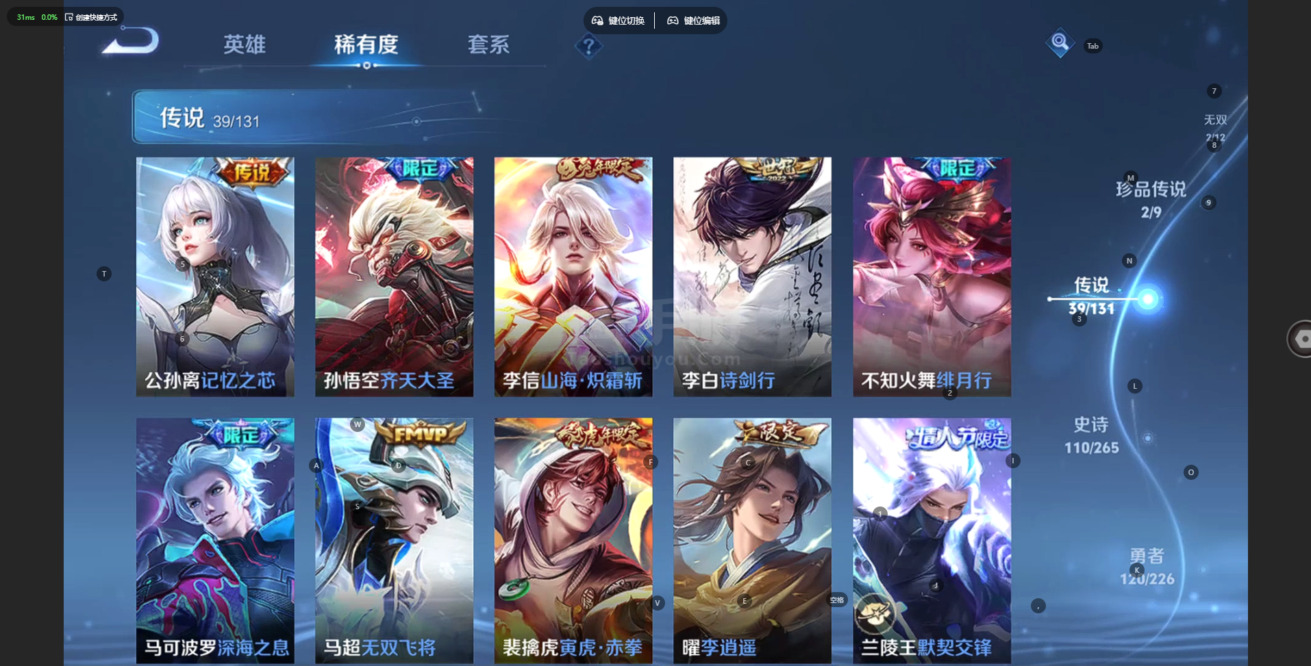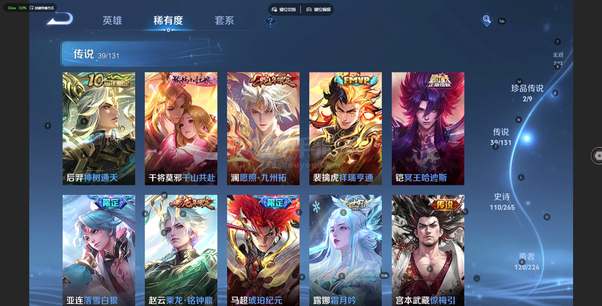 王者荣耀【苹果QQ】苹果Q--V9-332皮2典藏2珍品2无双39传说-神罪鸣剑曳影碎月剑心