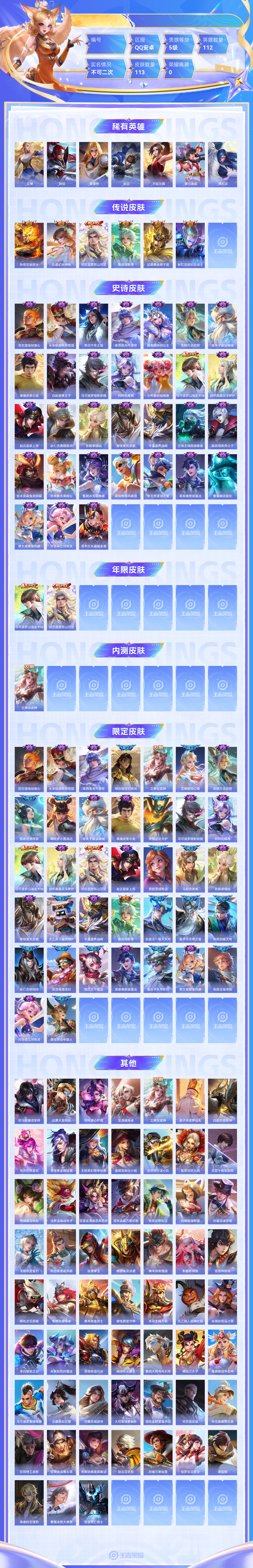 传说6 史诗31 限定37 英雄112 皮肤113