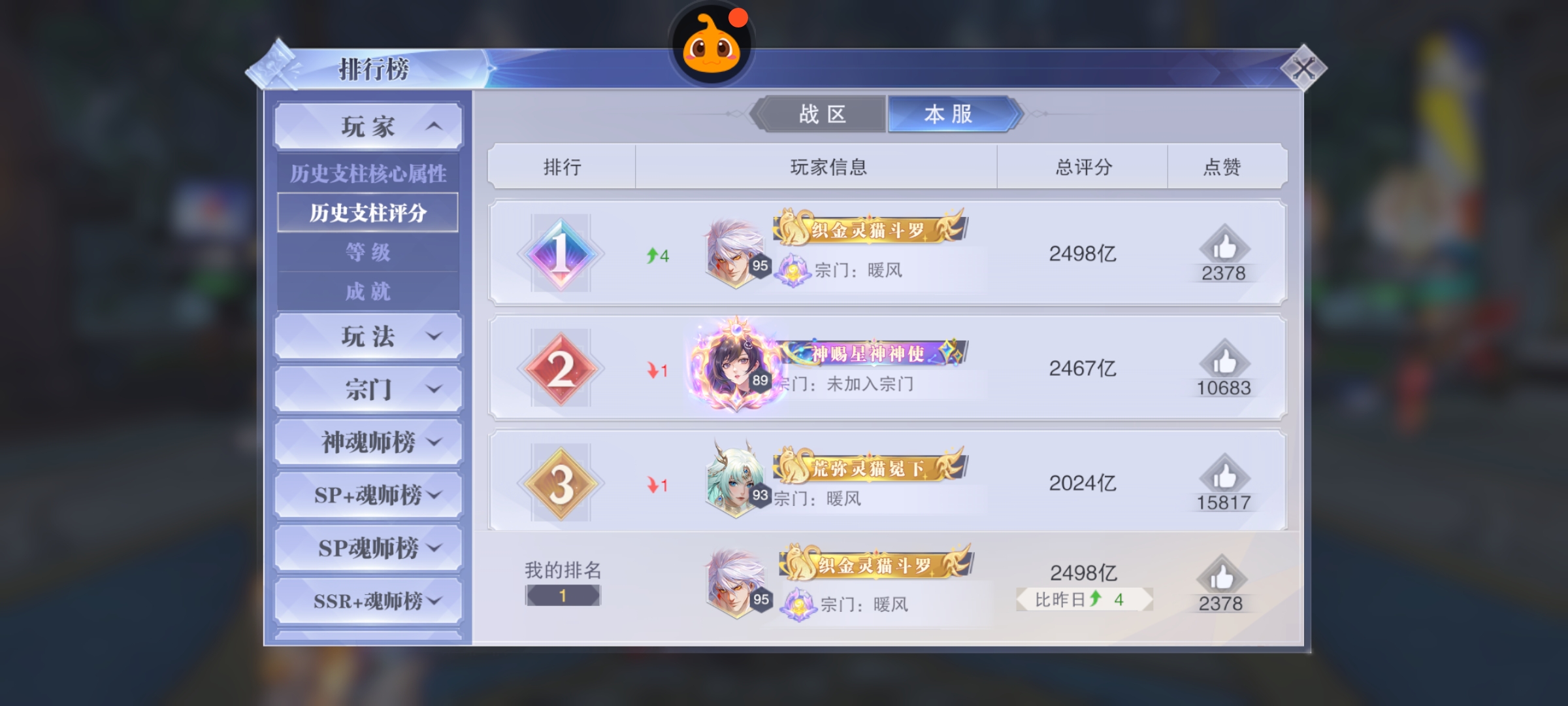 3350亿大供奉榜一全人物都有婉儿红一双专!1.4万钻石!4铠甲!霍雨浩9级神位!