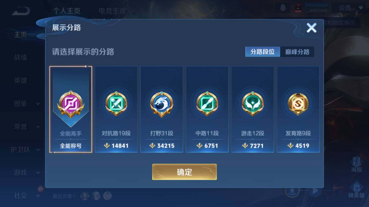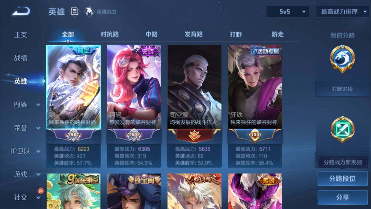打野31段,对抗19段,1星元,5按键,安卓Q-V6-126英雄-189皮-1