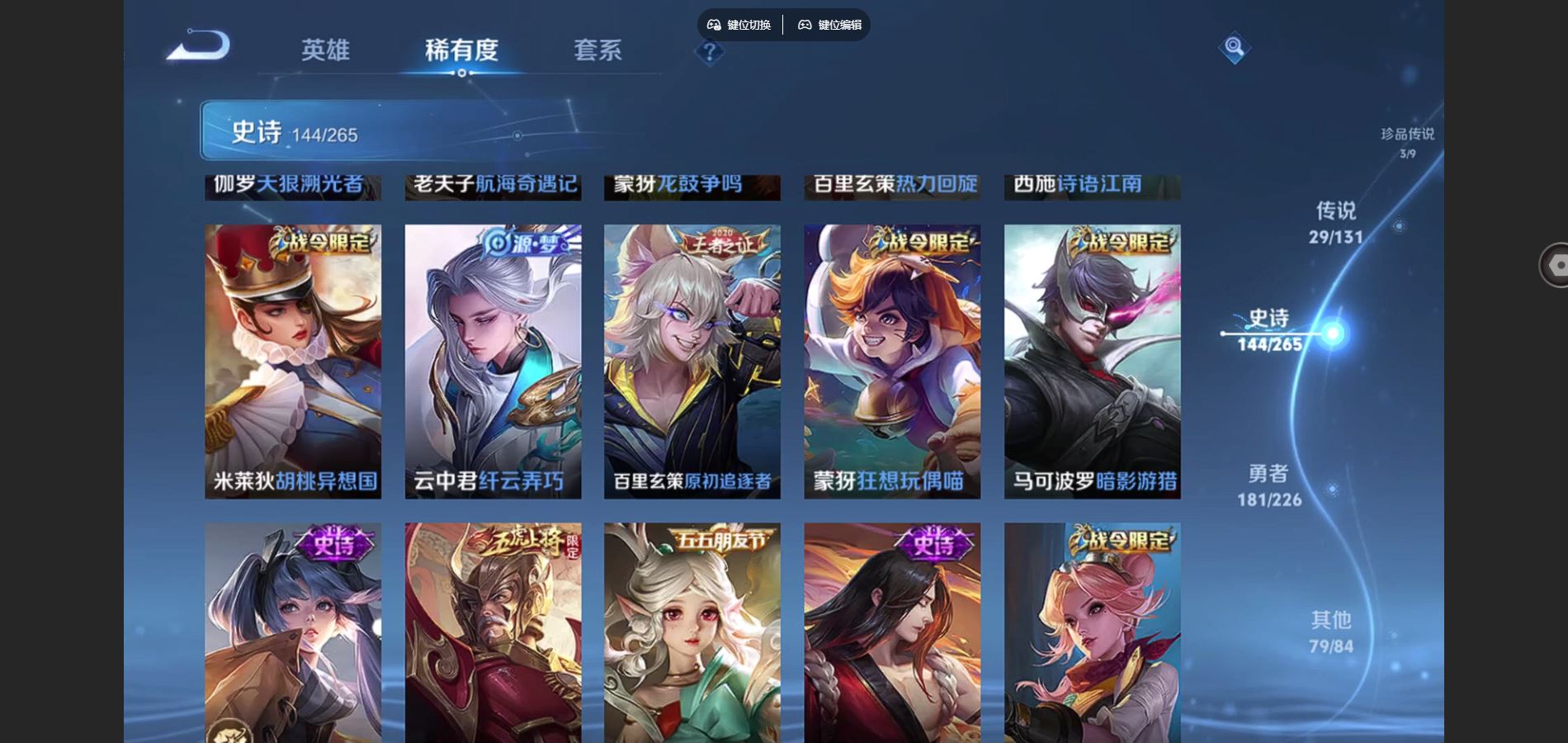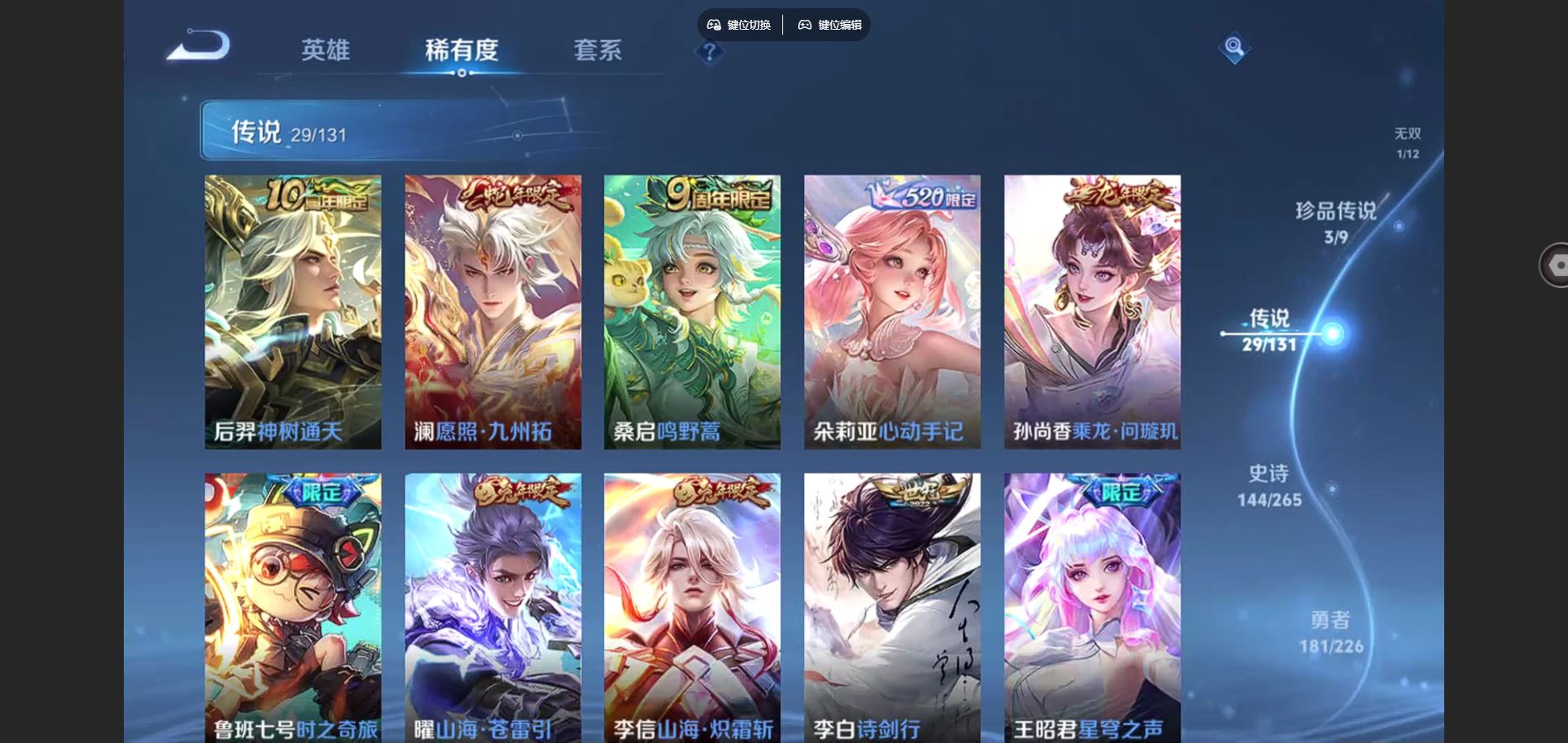 V9-442皮肤5典藏1无双3珍品传说29传说 发育路43段 中路37段 金标元流之子 4星传说 时