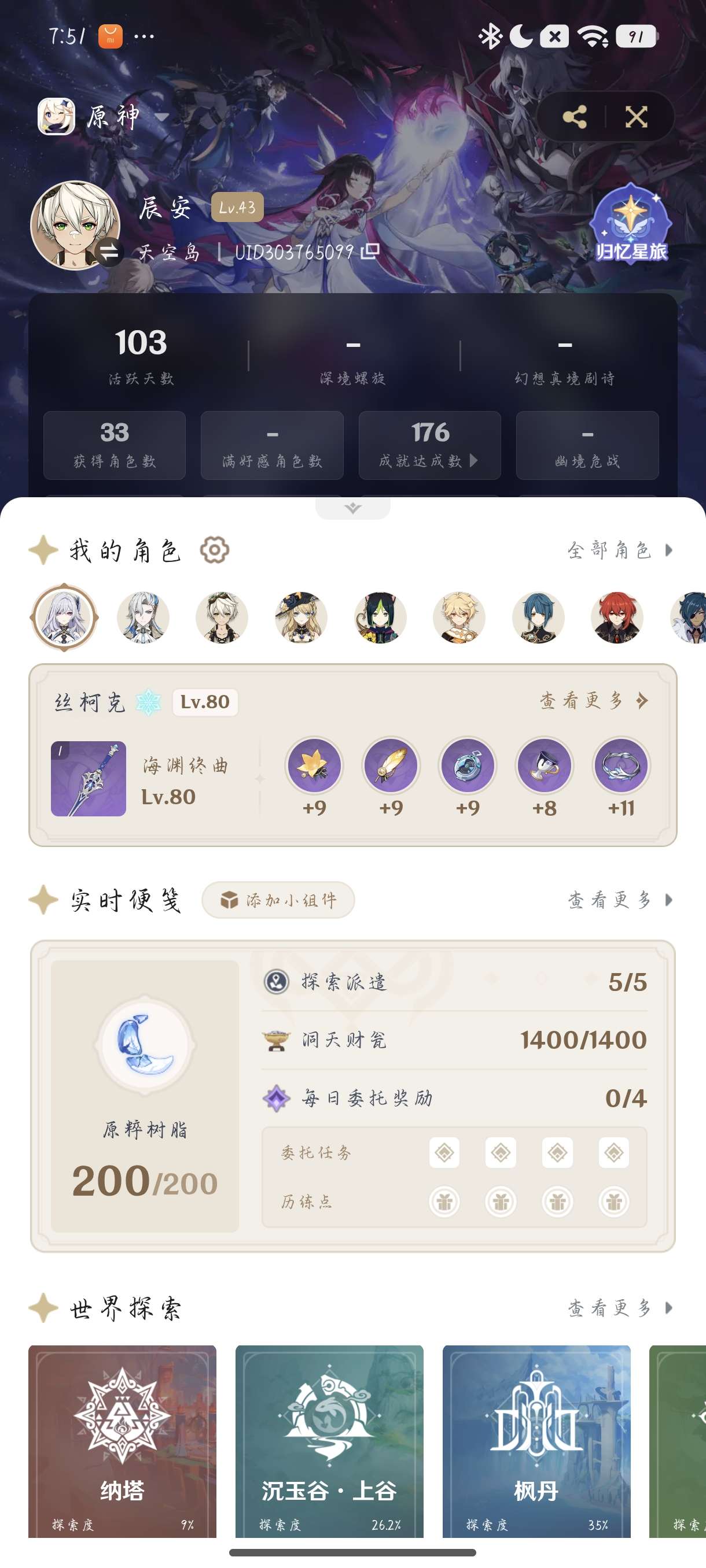 有龙王,公子的师傅这些。也是玩了好久了,40多级。一点压力都没有。然后还赠一个崩铁号。30开头的id