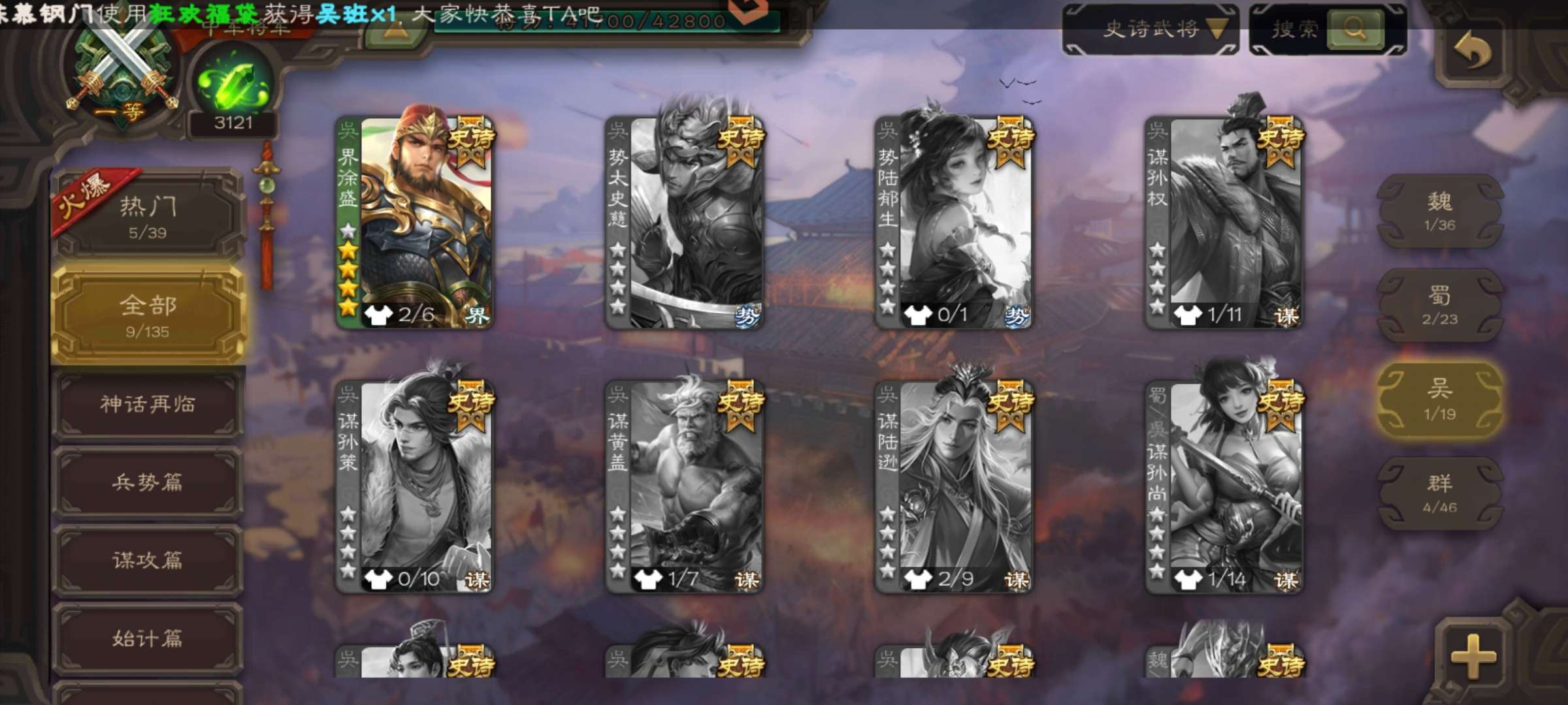 史诗武将数量: