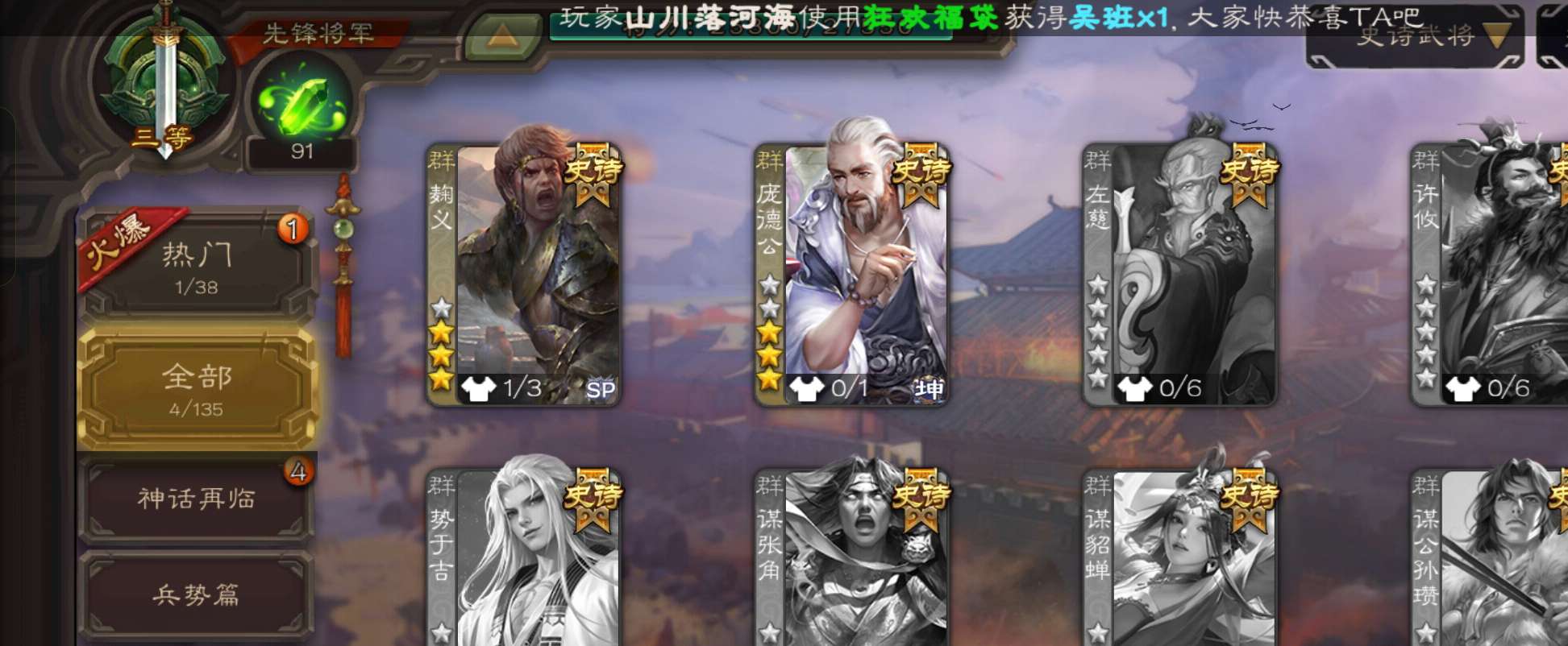 先锋将军,回廊动白马庞德公花鬘贺齐4史诗,界全琮谋韩当甘夫人崔琰136将