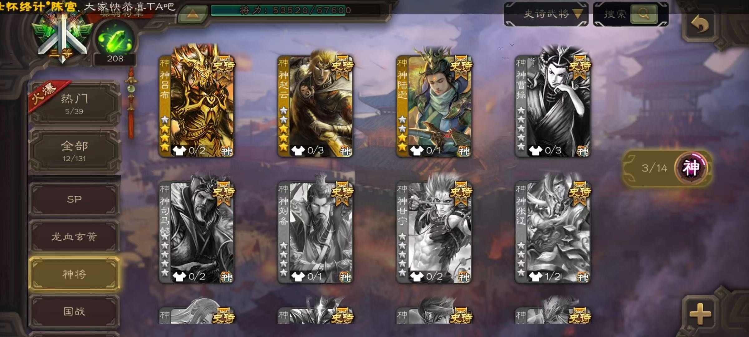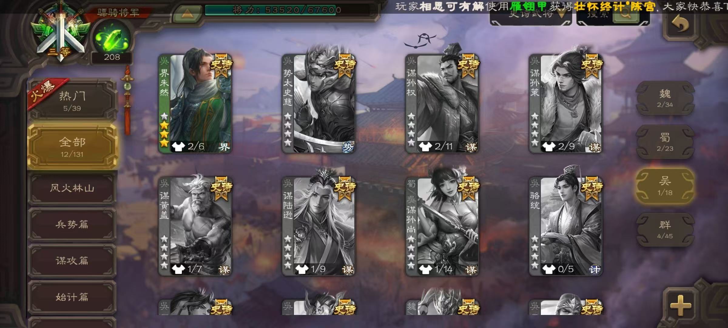 史诗武将数量: