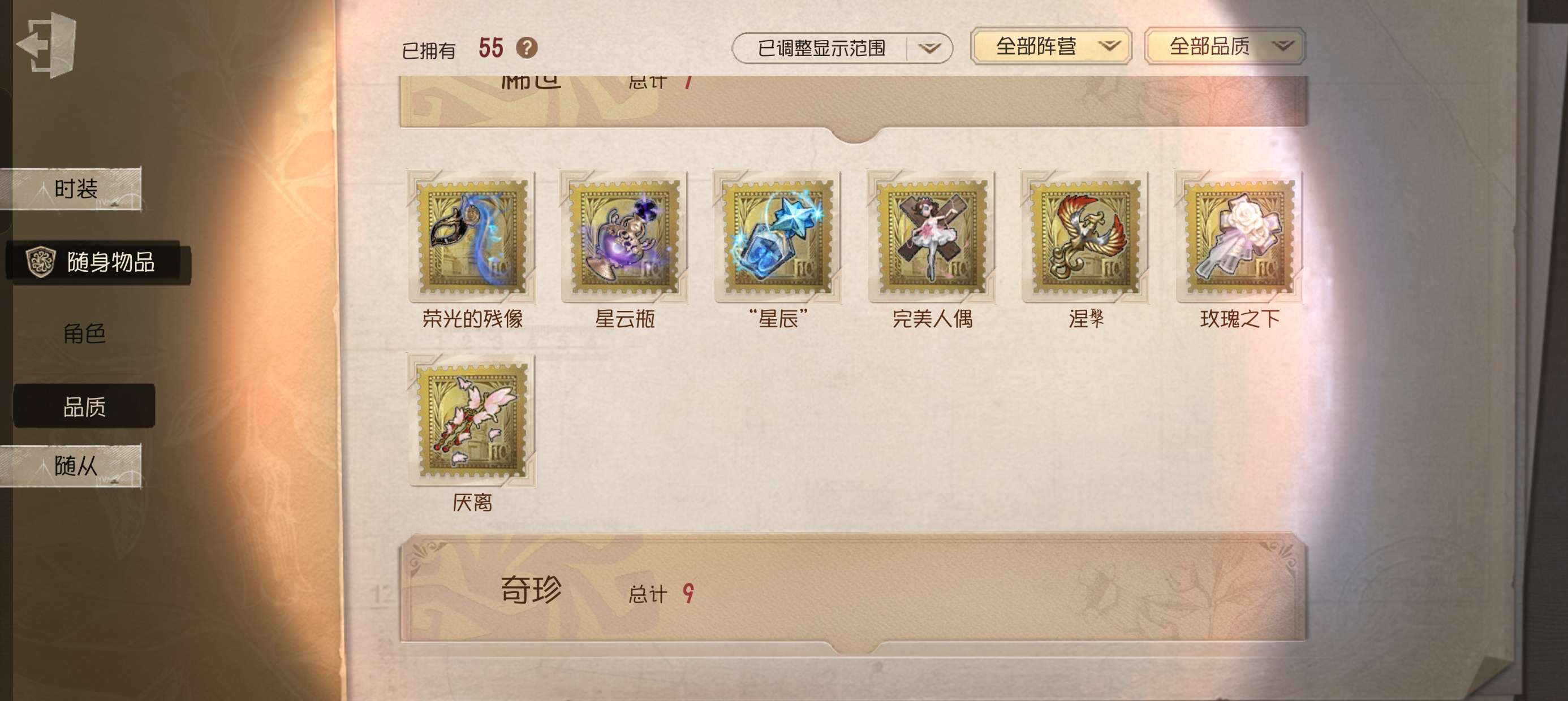 随身物品数量: