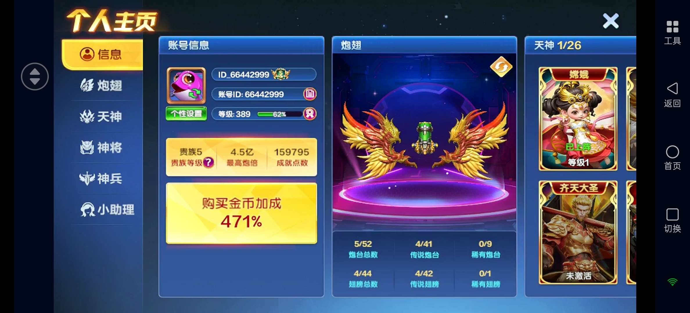 小米安卓机通用卖断9.5亿炮实炮4.5亿炮 23万亿 天神嫦娥8神将,能换绑。保证金商家安全可靠