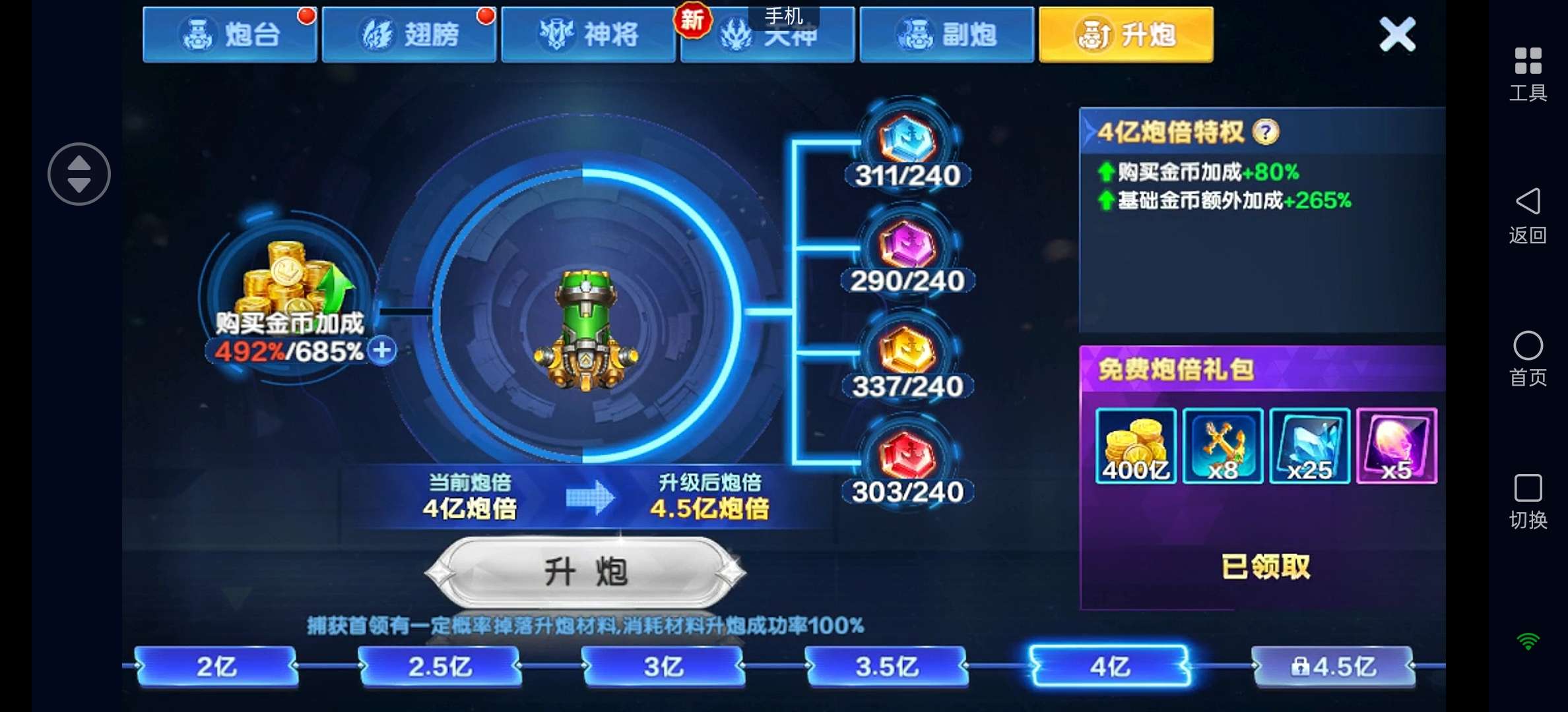 小米安卓机通用卖断8.5亿炮实炮4亿炮 21万亿 天神嫦娥4神将,能换绑。保证金商家安全可靠
