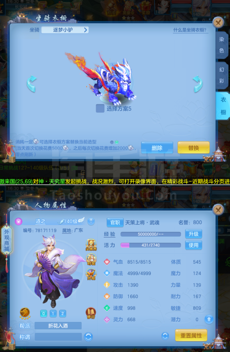 幻唐志:逍遥外传(神武4)【安卓官方】(一年换绑)(140盘丝)游云惊龙/无双重/4件12-1件13/1件10-100万银子-双内丹神兽蛇-7个6技能-1满魂(4准满)高级坐骑-4专属血脉