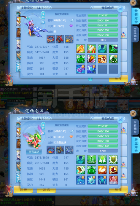 (一年换绑)(140盘丝)游云惊龙/无双重/4件12-1件13/1件10-100万银子-双内丹神兽蛇-7个6技能-1满魂(4准满)高级坐骑-4专属血脉