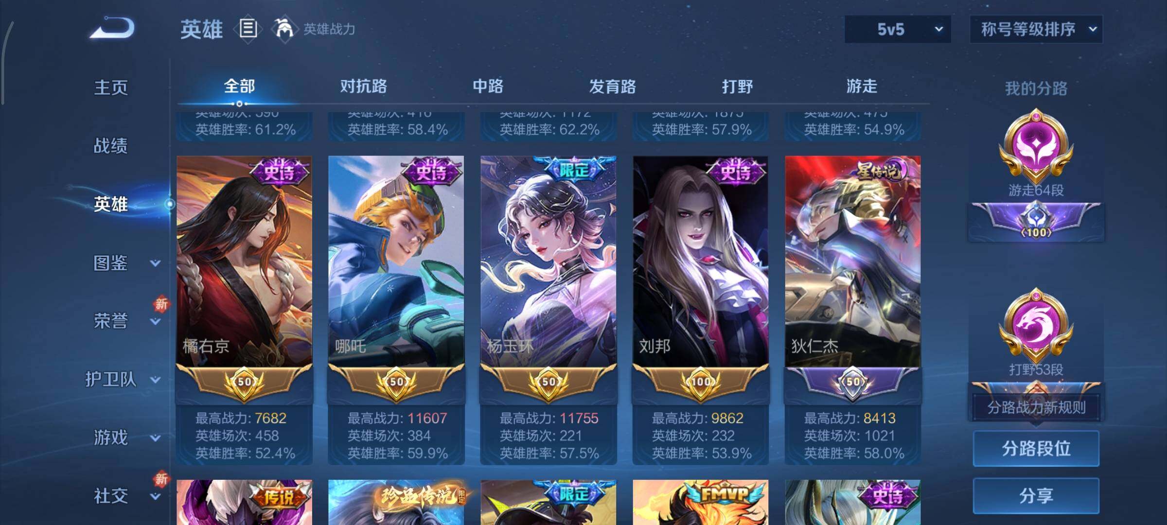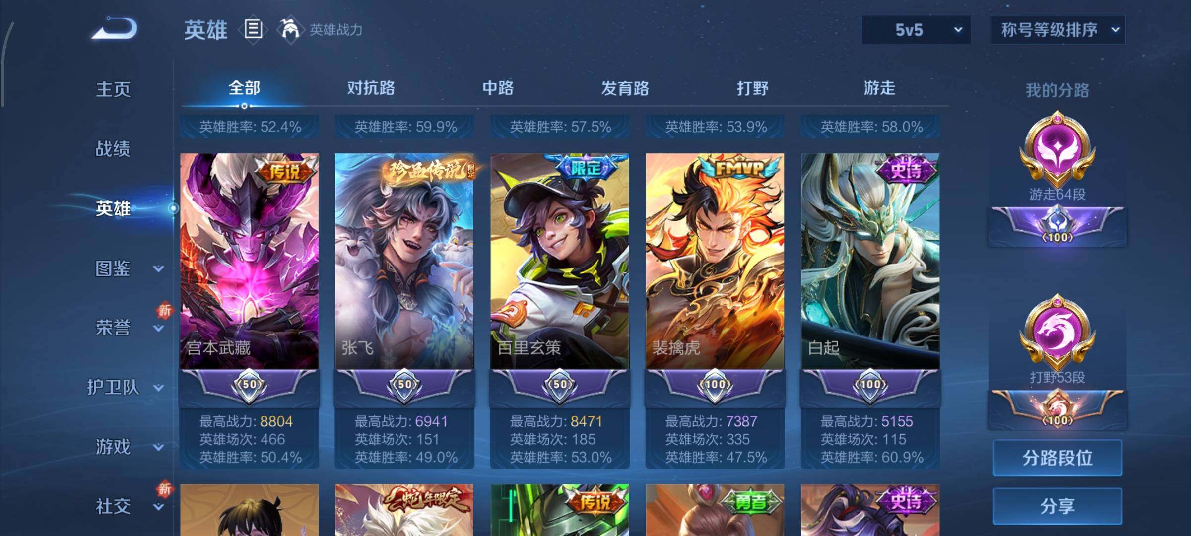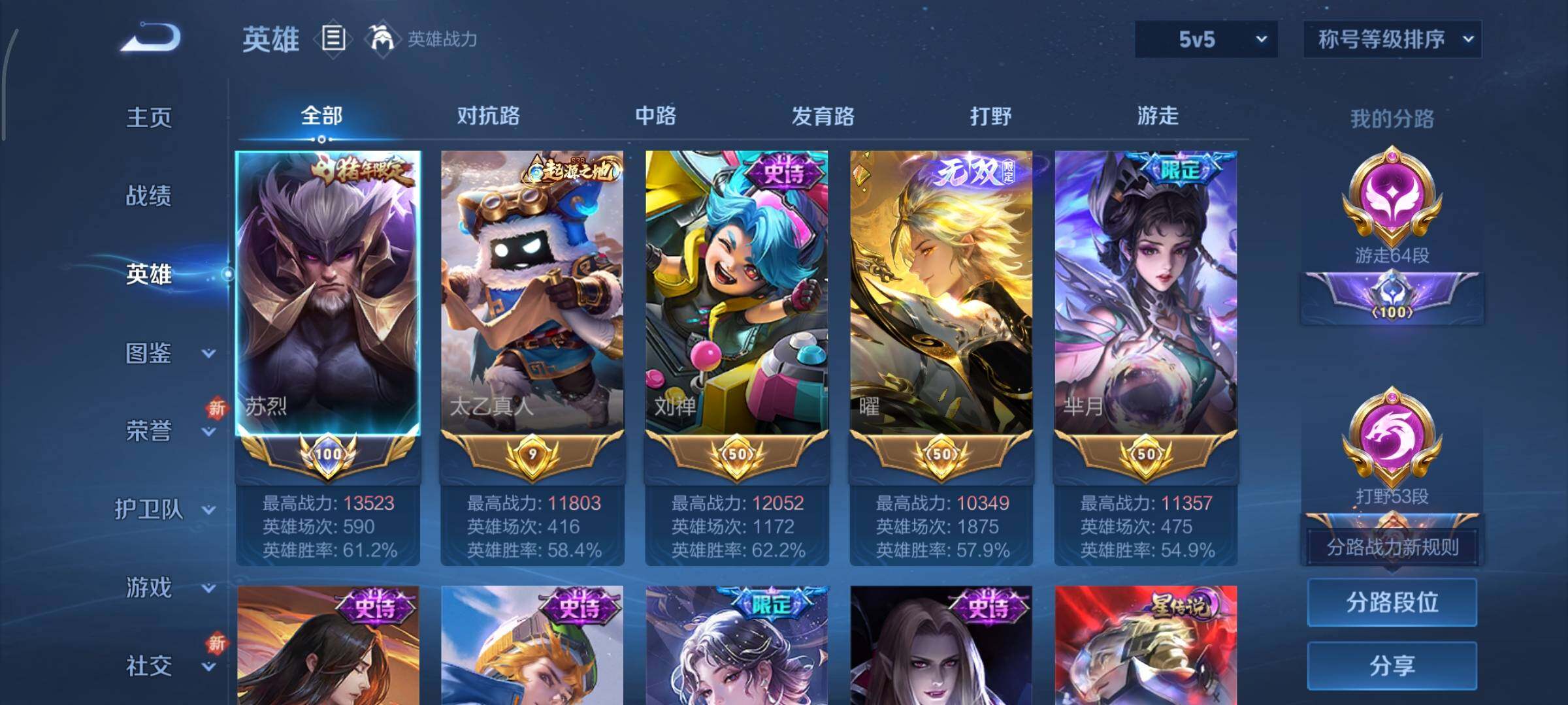 可换绑【性价比优质号 游走64段 打野53段 苏烈小国标1.35W 金标万战太