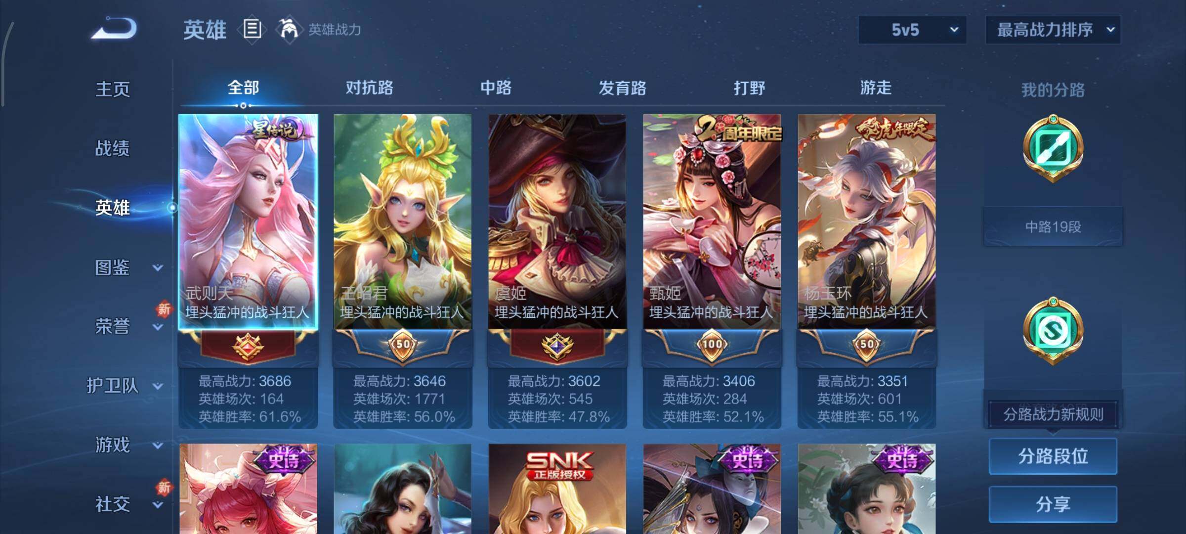 可换绑【性价比优质号 典藏含武则天英雄】 1按键,2星传说,4王者印记,五级铭