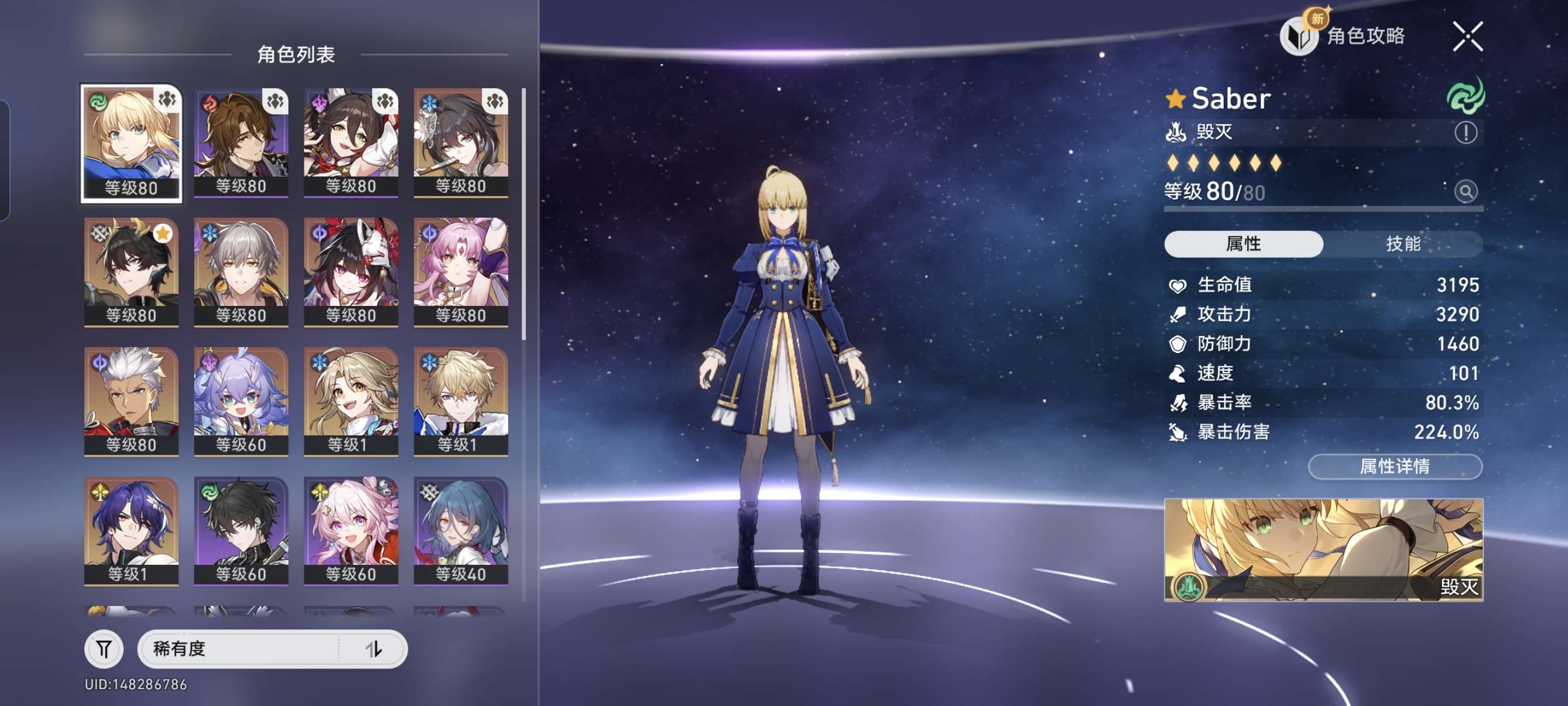 61saber,21盾丹,1命阮梅,号很欧,卡池66抽,没出会一直攒,星穹专票20000+ /45+