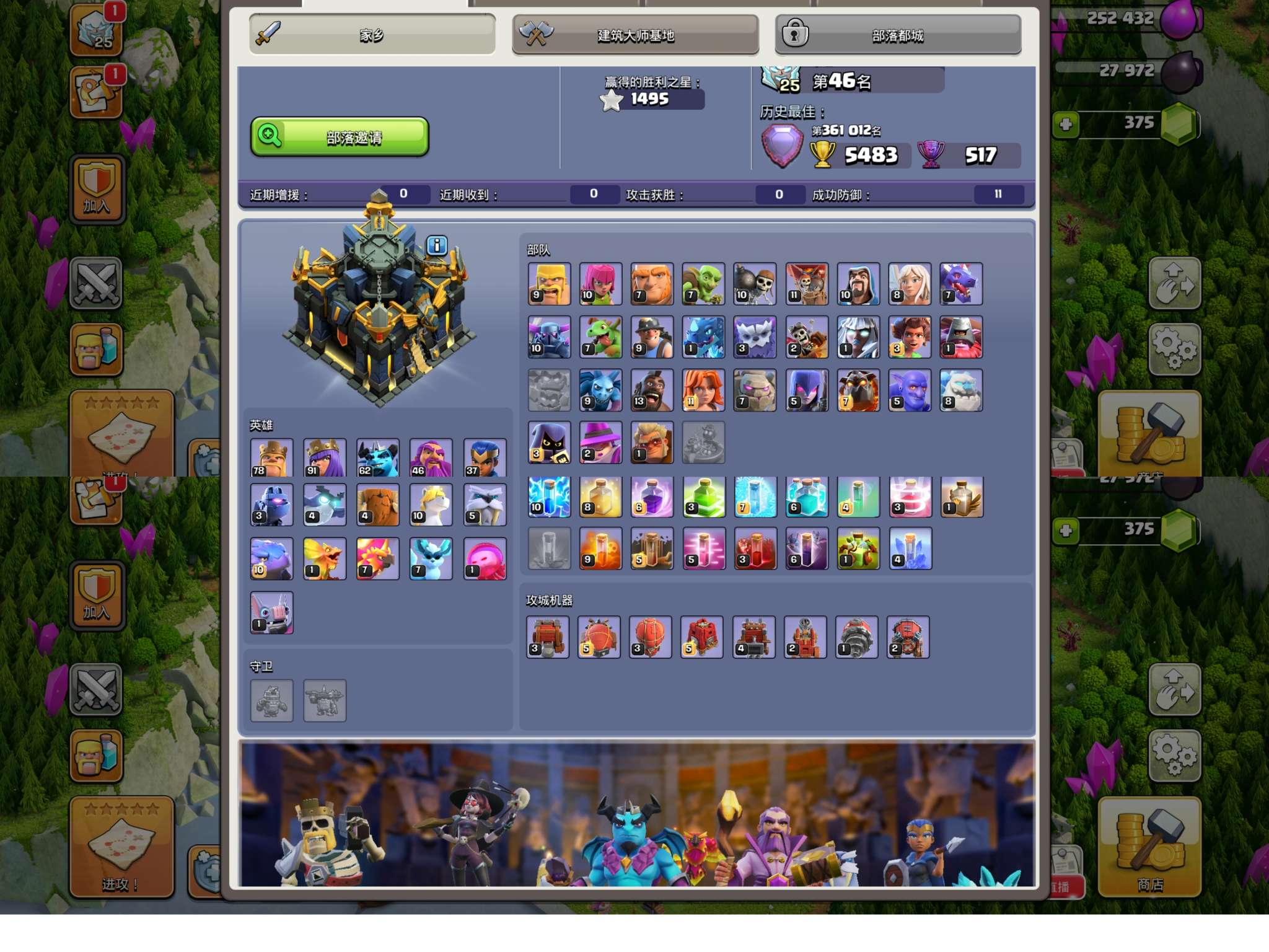 部落冲突+皇室战争二合一账号国际服17本高王✔6史诗装备全部都有✔宠物等级不错✔可换邮箱✔皇室战争