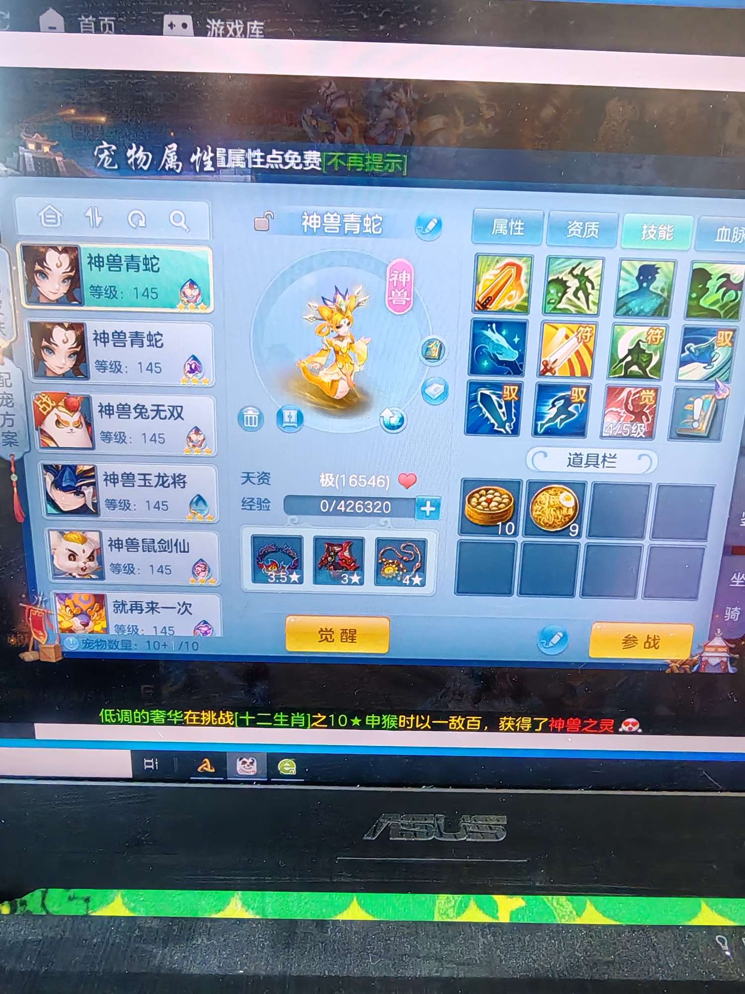 幻唐志:逍遥外传(神武4)【安卓官方】140五只满技能神兽,双蛇一龙
