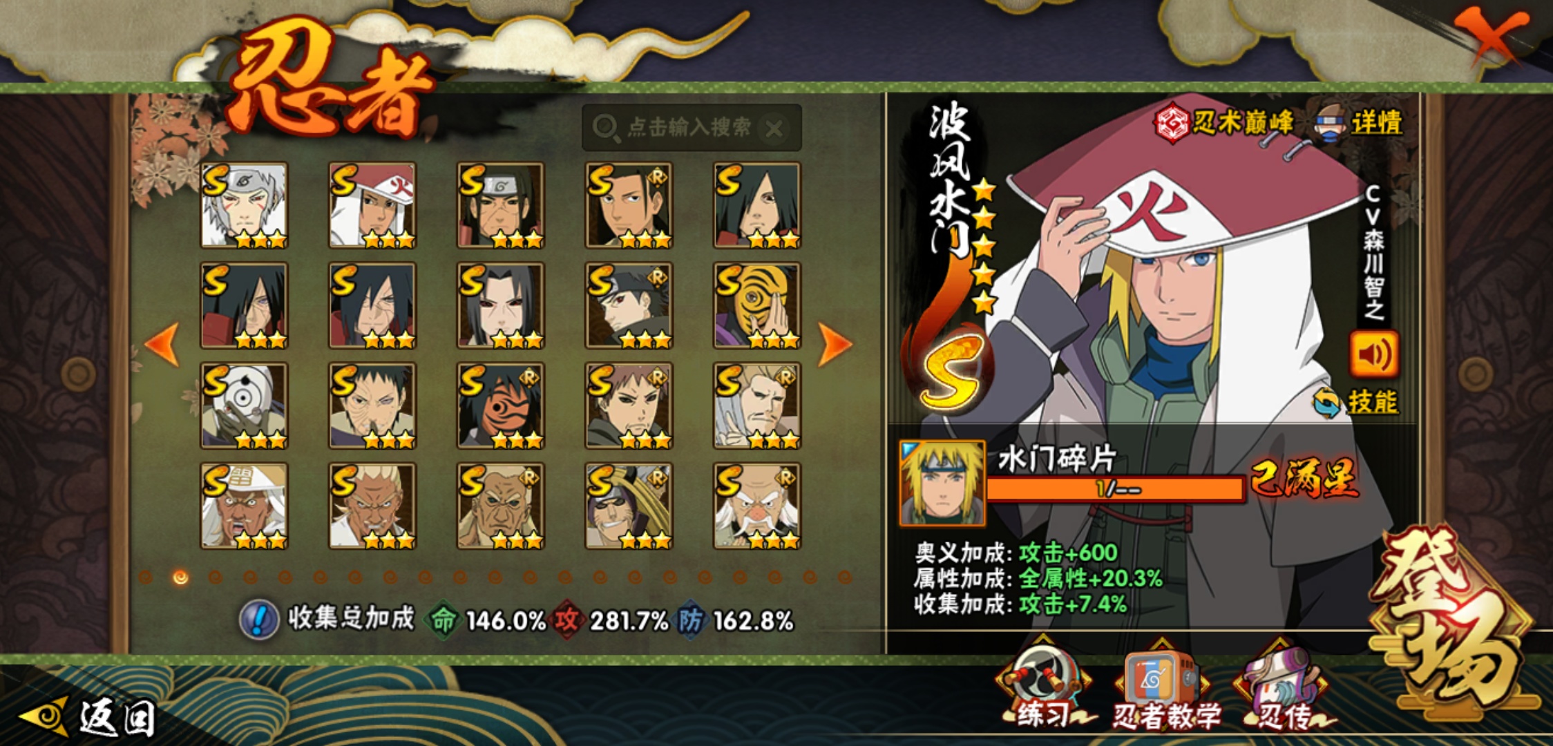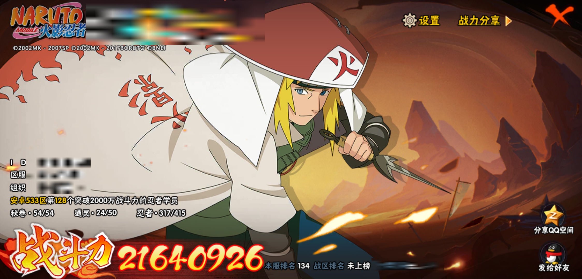 战斗力:2164W+;段位:上忍1阶;本服排名:134;