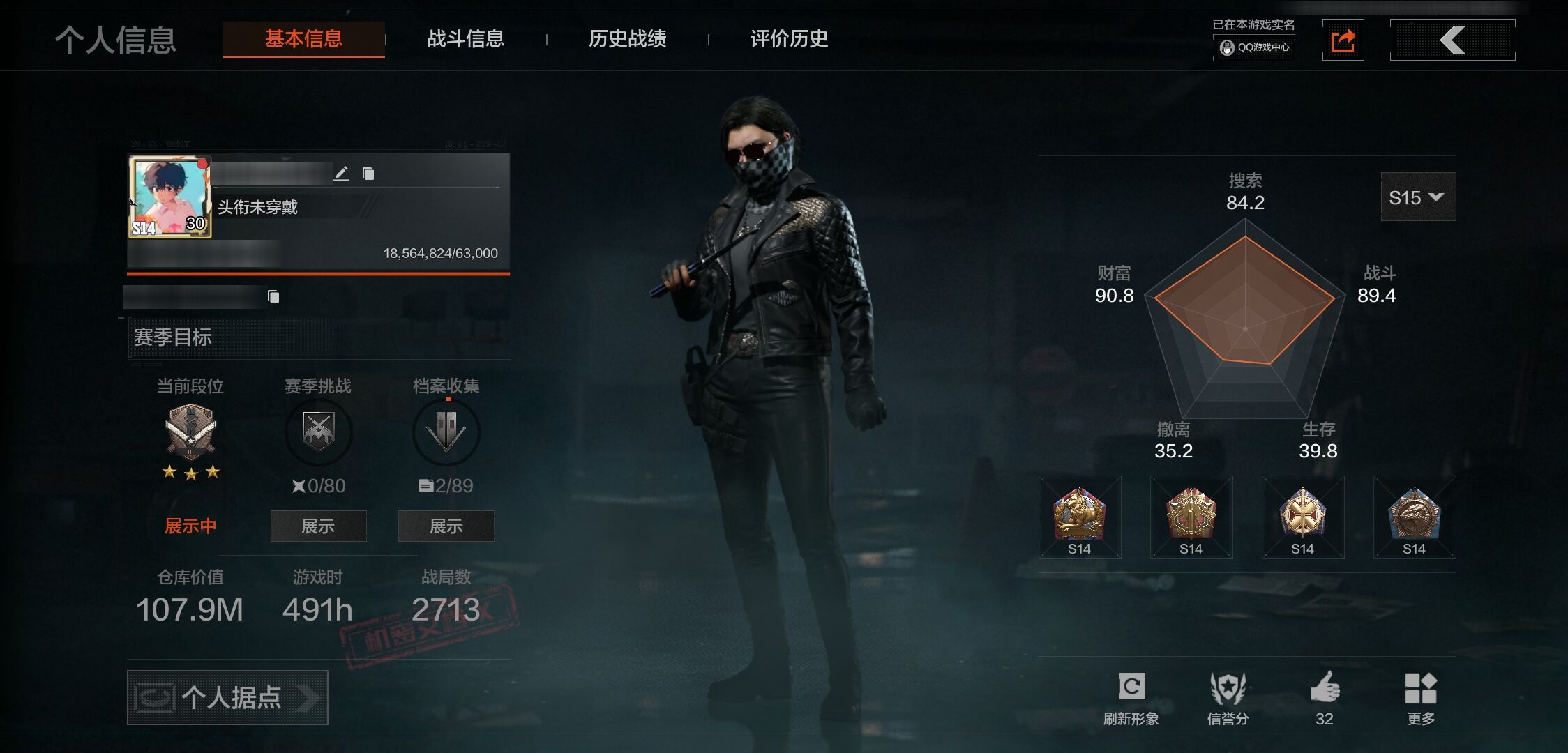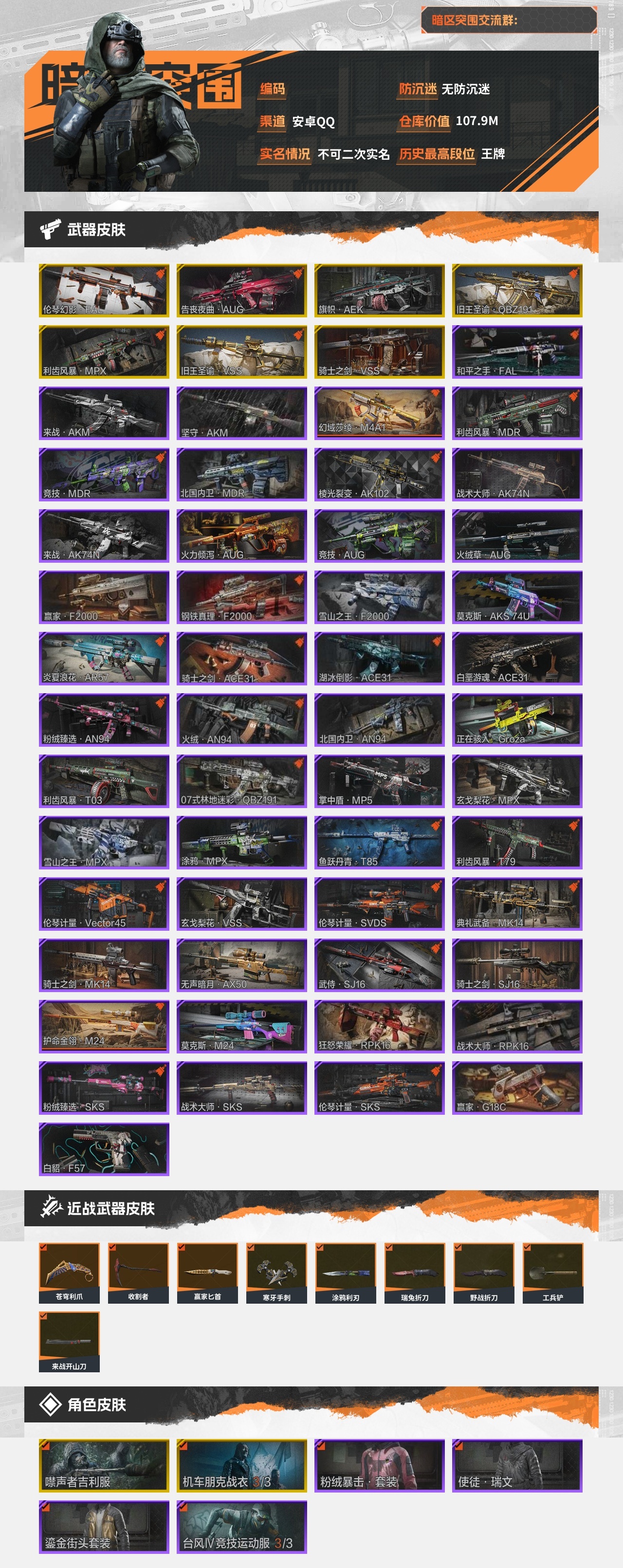 30级,刀皮9,金枪皮7,紫枪皮50,历史最高段位:王牌,