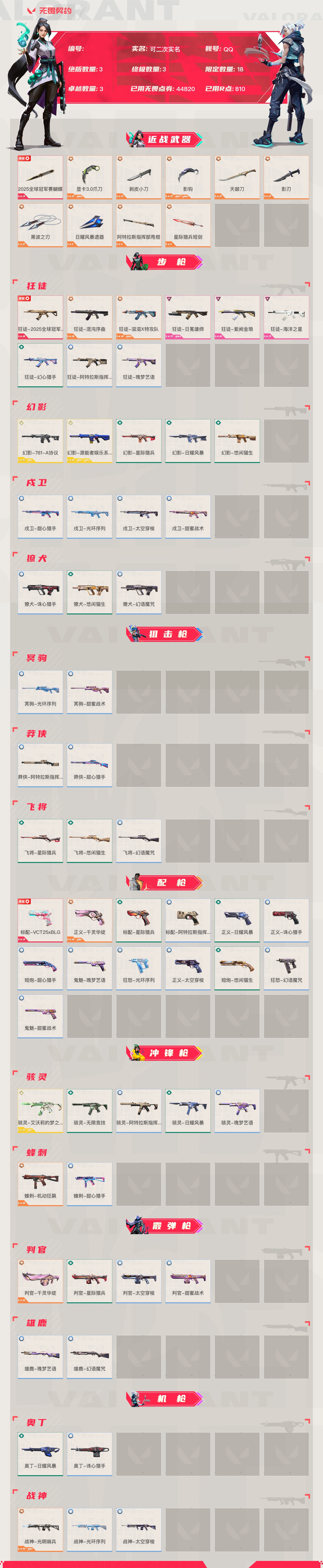 Lv113|铂金III, 刀皮数量10,枪皮数量59(绝版3
