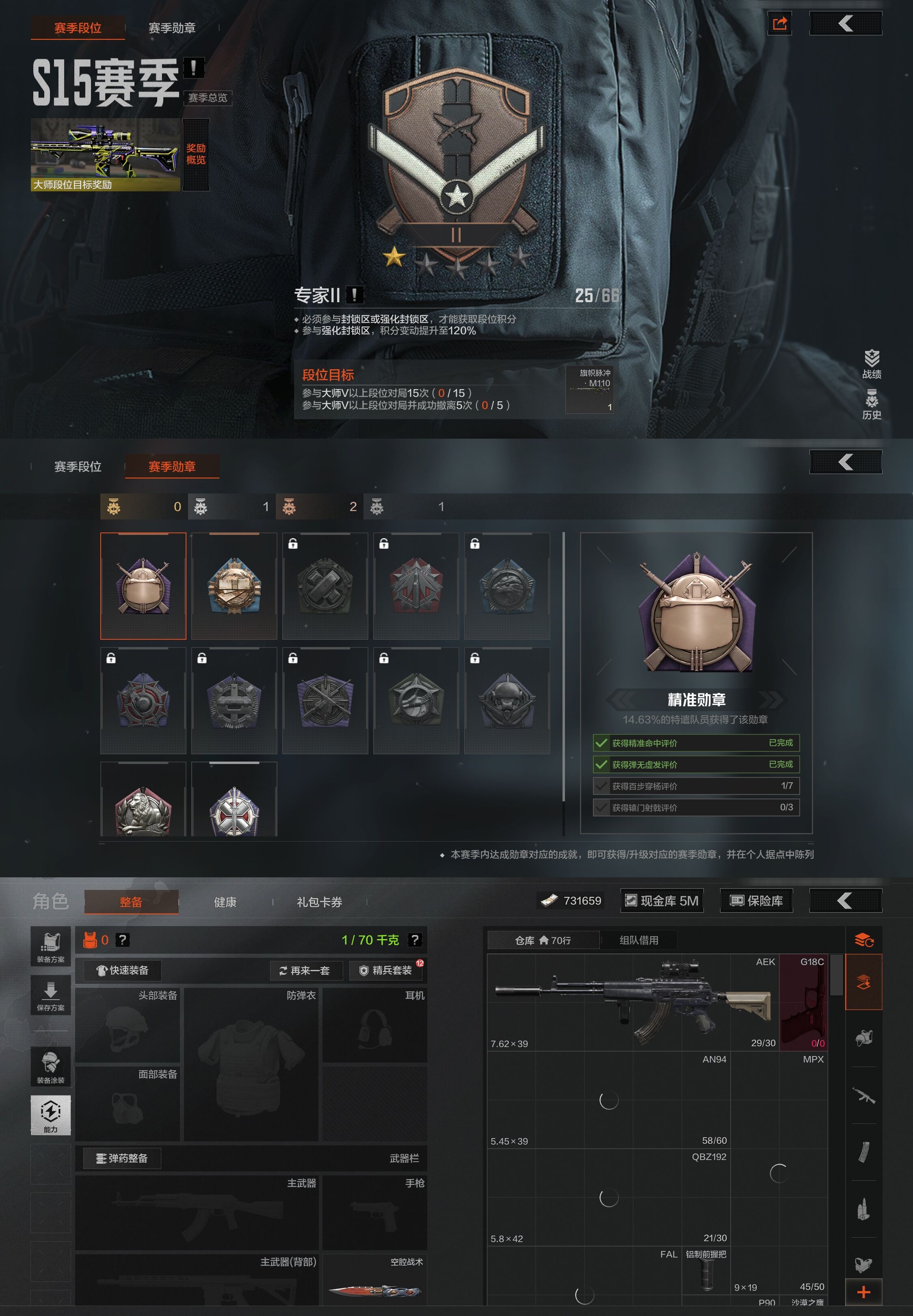 30级,刀皮2,紫枪皮7,历史最高段位:大师,