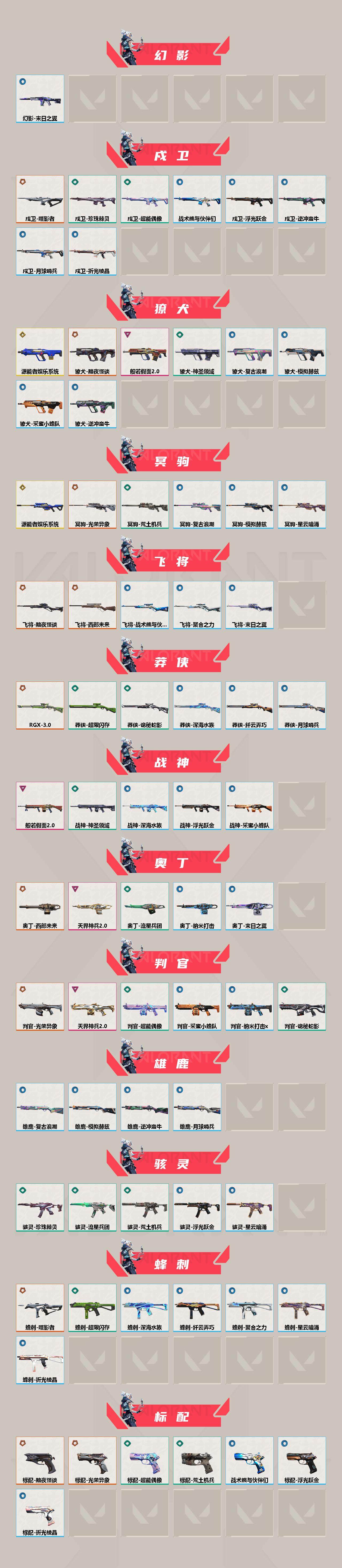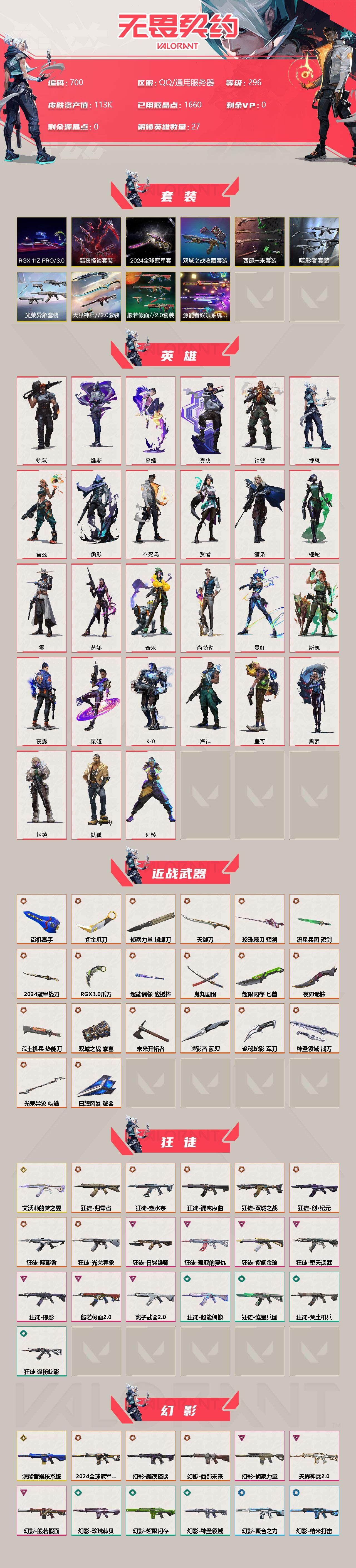 【英雄】:幻棱,炼狱,维斯,暮蝶,钛狐,壹决,铁臂,捷风,雷兹,幽影,不死鸟,贤者,猎枭,蝰蛇,零,芮娜,奇乐,尚勃勒,霓虹,斯凯,夜露,星礈,K/O,海神,盖可,黑梦,钢锁