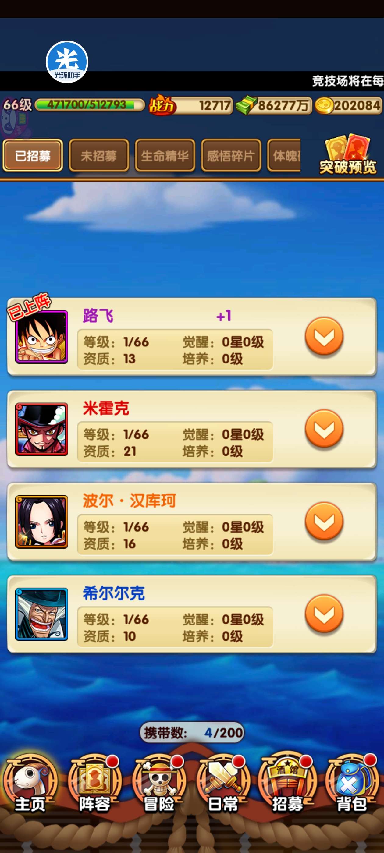 航海王强者之路【安卓官方】v2金币精华开局号.93/单人无替补/三无账号16000精华20w金币 !,1400多瓶体力1400