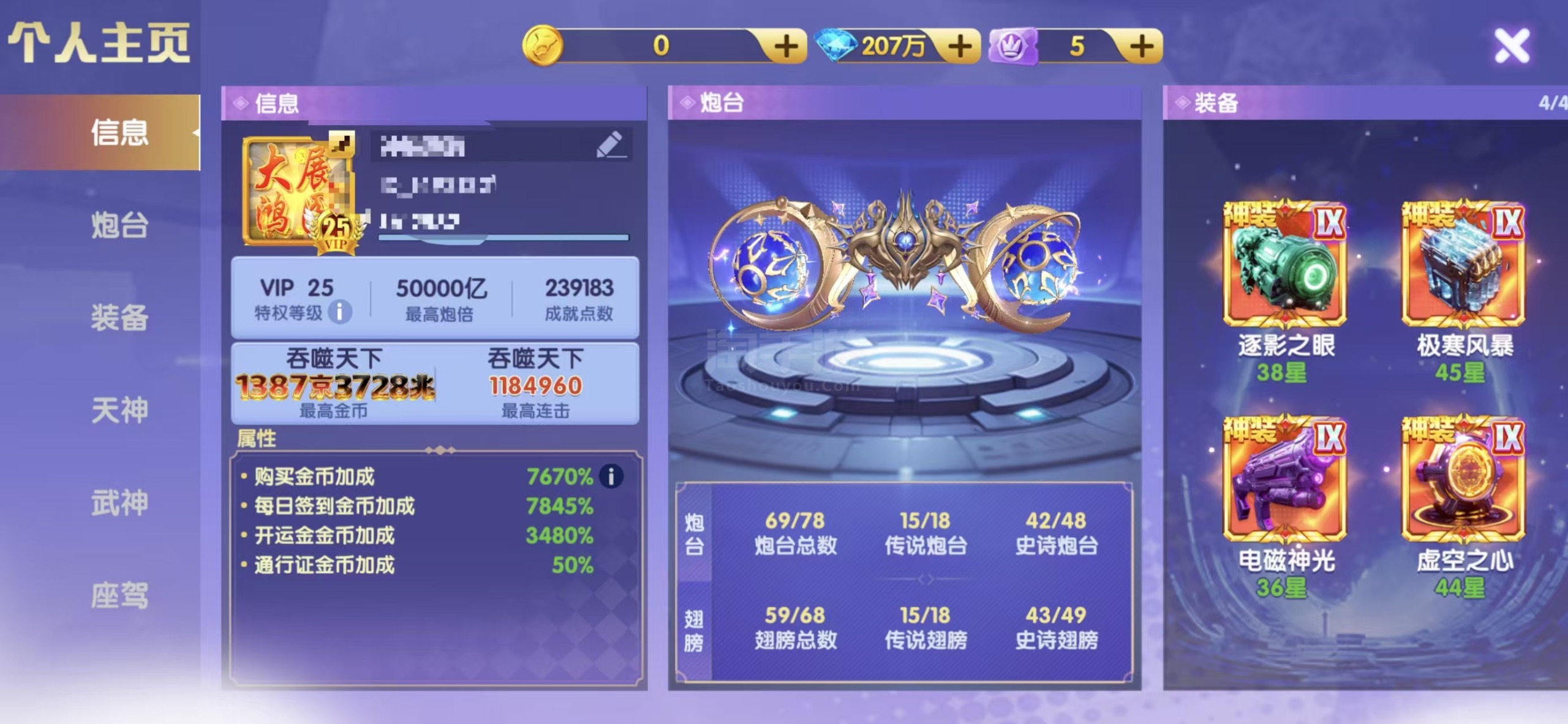 官方手机号 可换绑 氪金百万号 顶配v25 加成7670 满天神 武神差三个 其他全部满星 207万砖石
