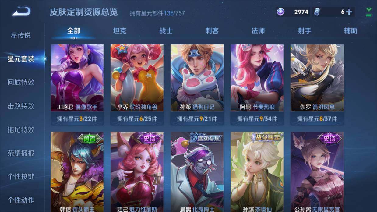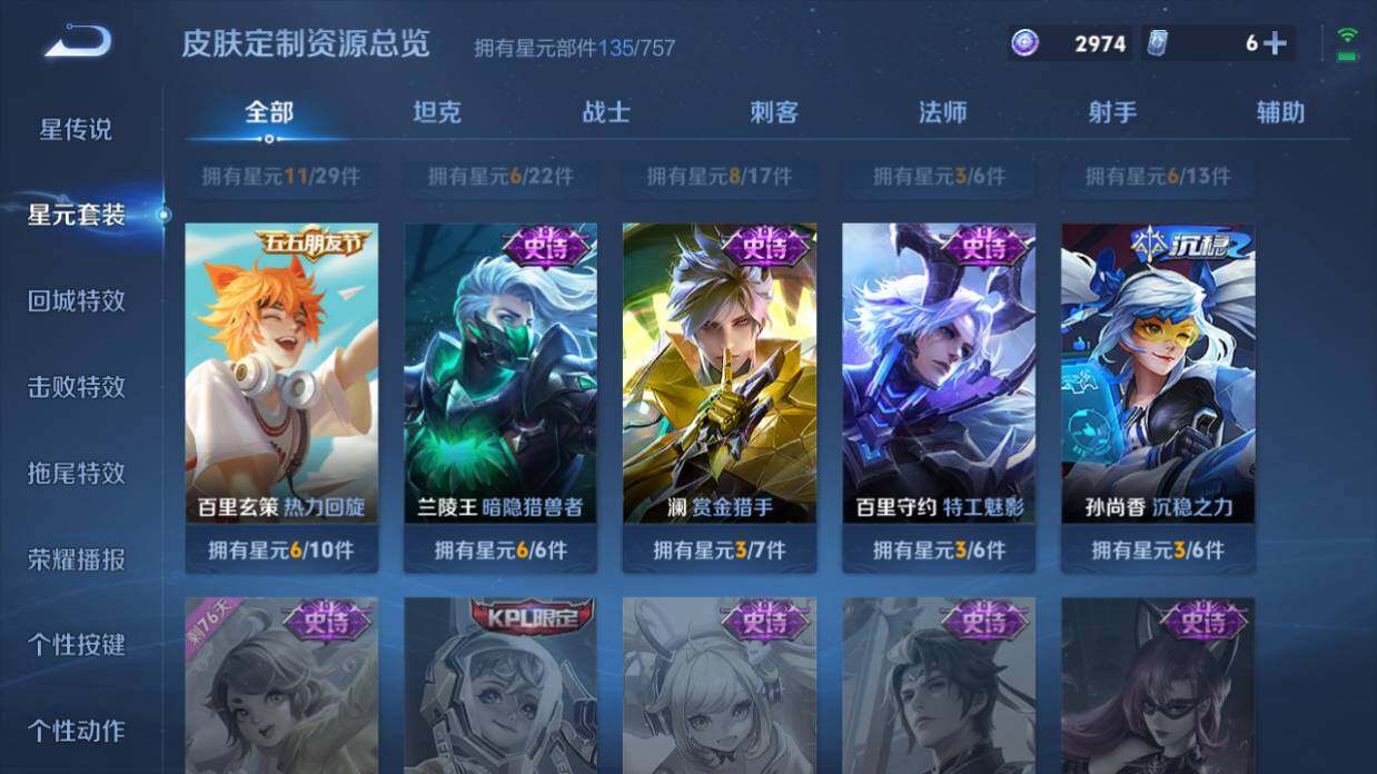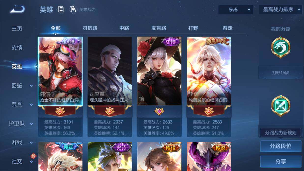 打野15段,6按键 安卓Q-V7-127英雄-198皮肤-11传说-60史诗