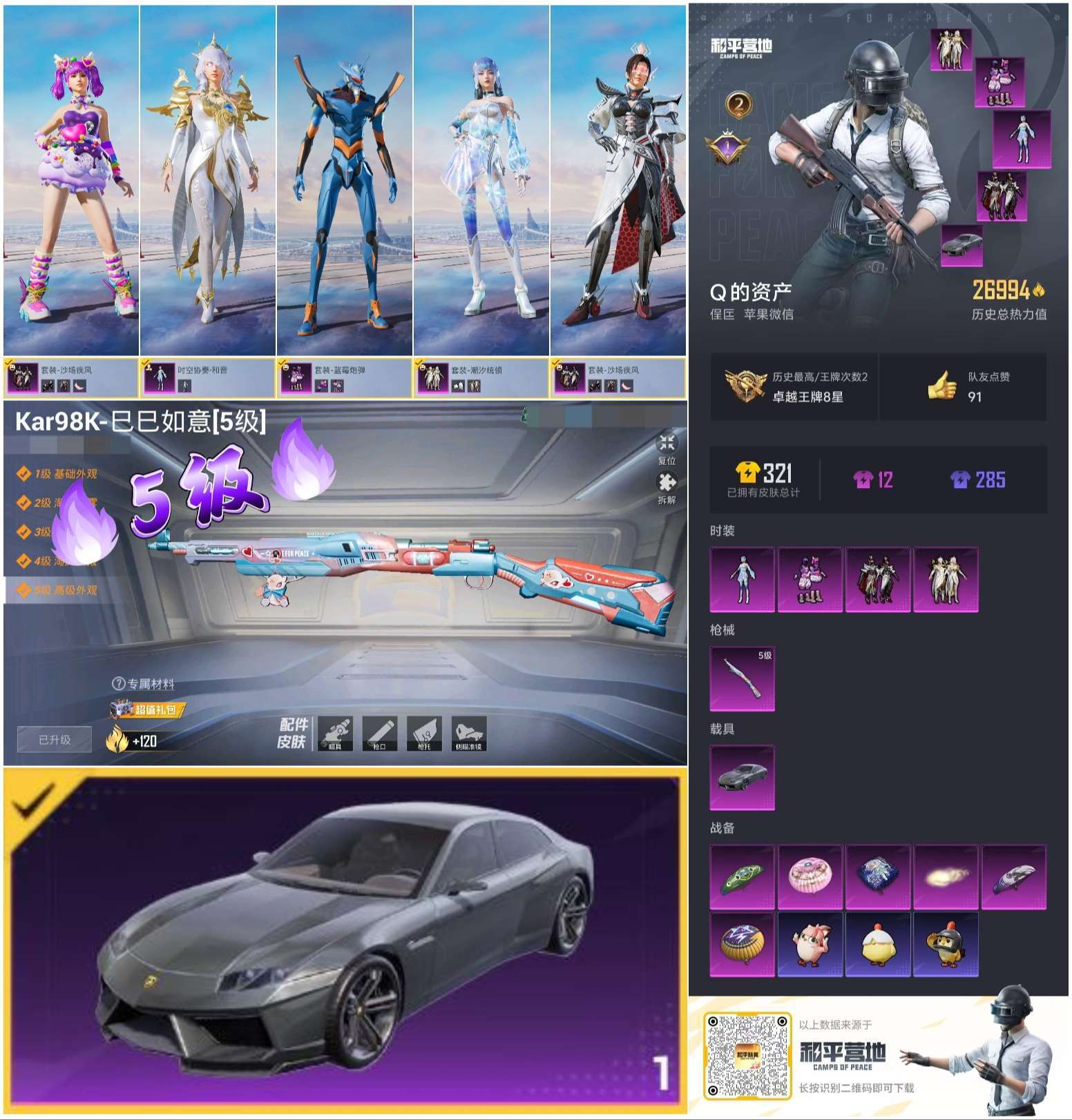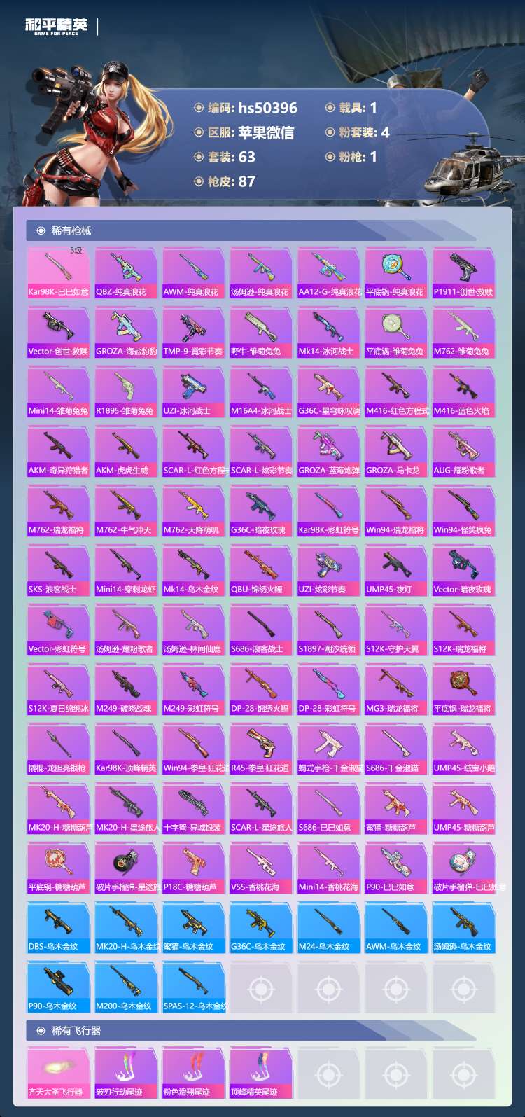 hs50396 苹果微-2王牌印记-4粉装-1特效枪-1载具-26994热力值-63套装-87枪皮