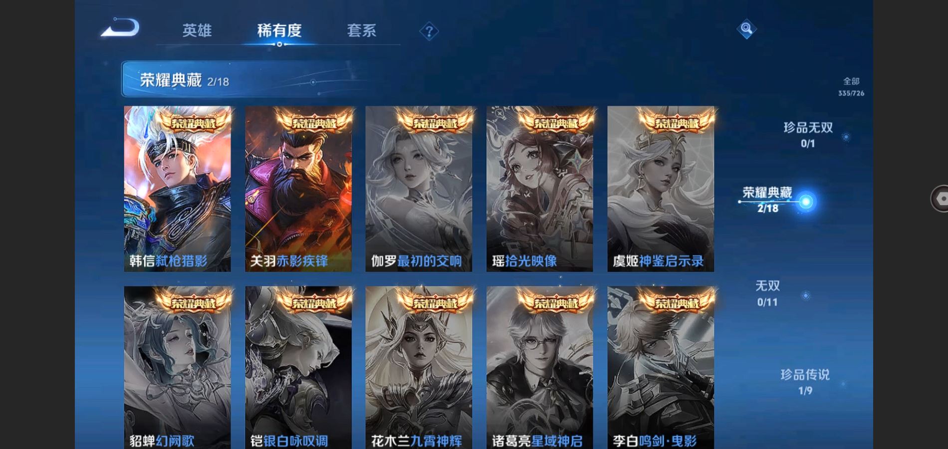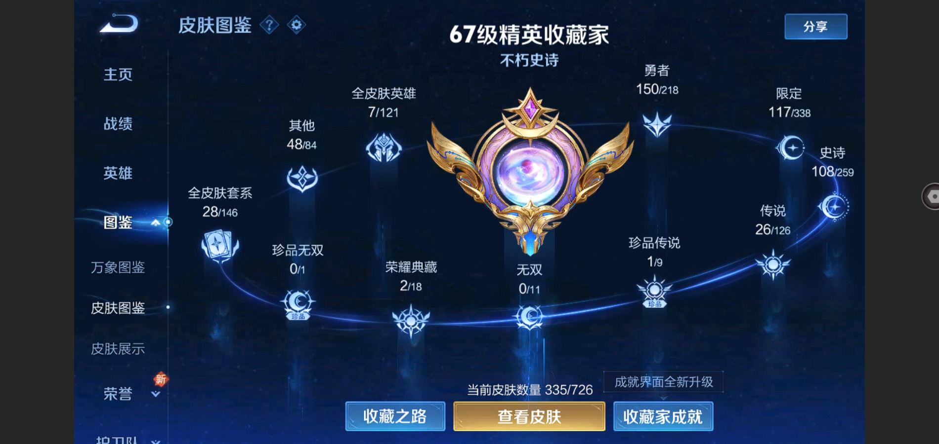 V8-335皮肤 2典藏 1珍品 26传说-3星传说 幽冥之眼 星际治安官 金色仲夏夜 荣耀印记2