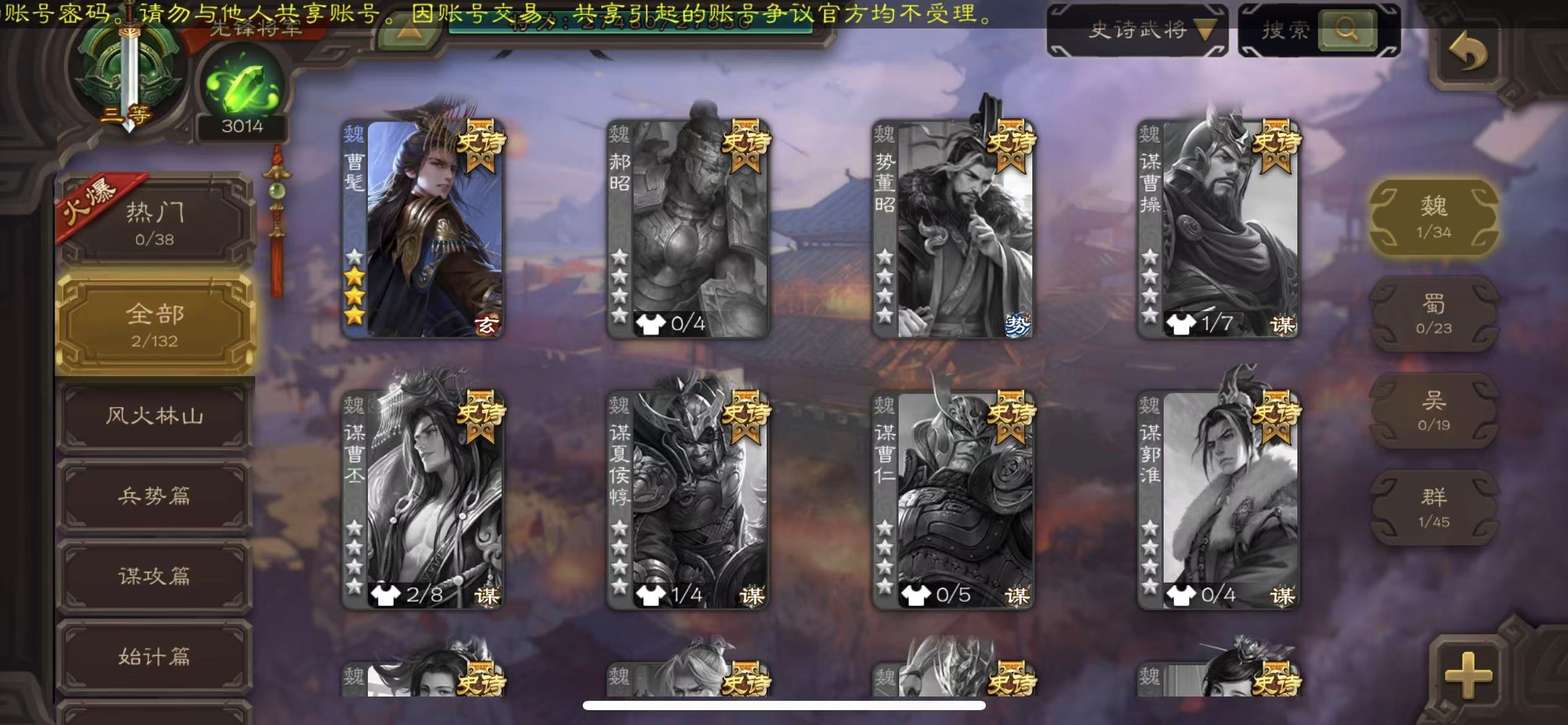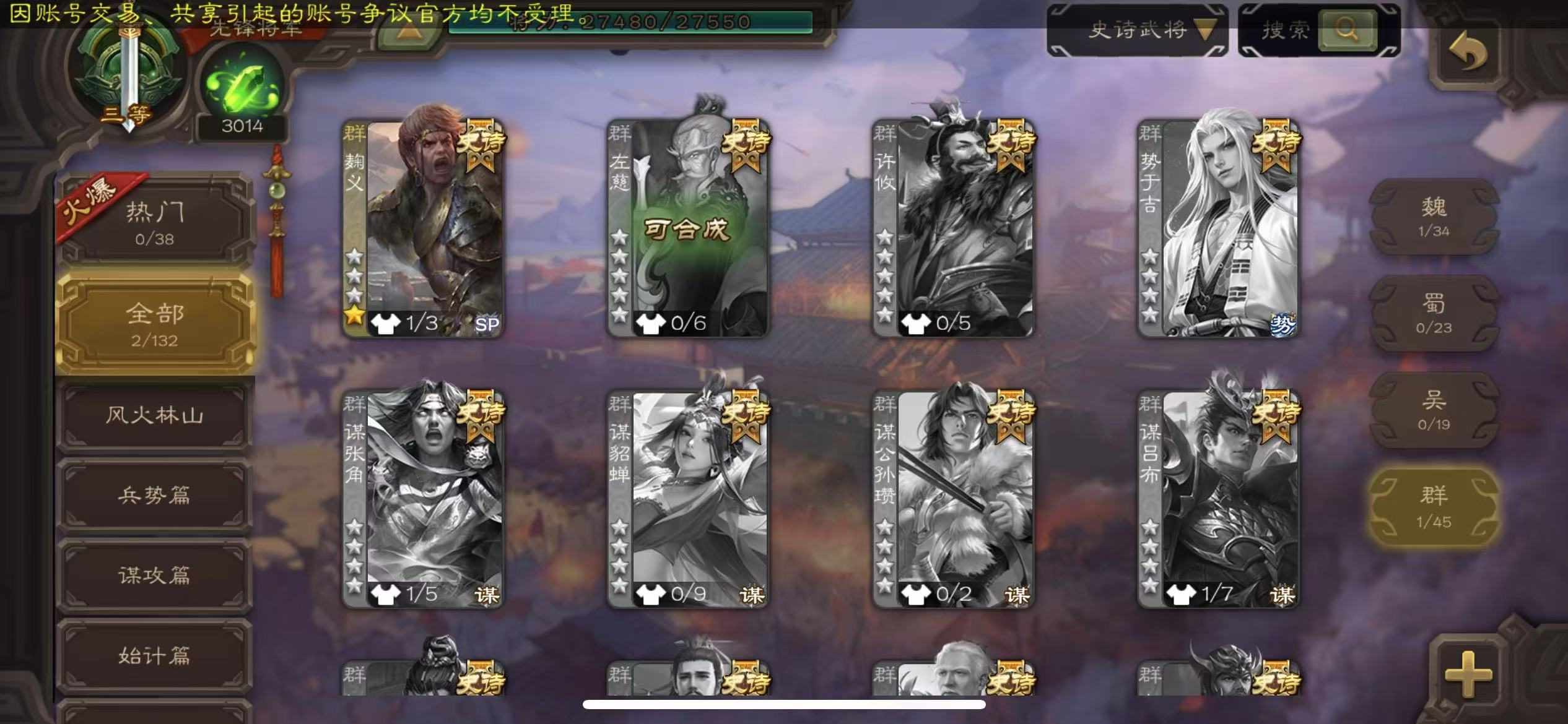 史诗武将数量: