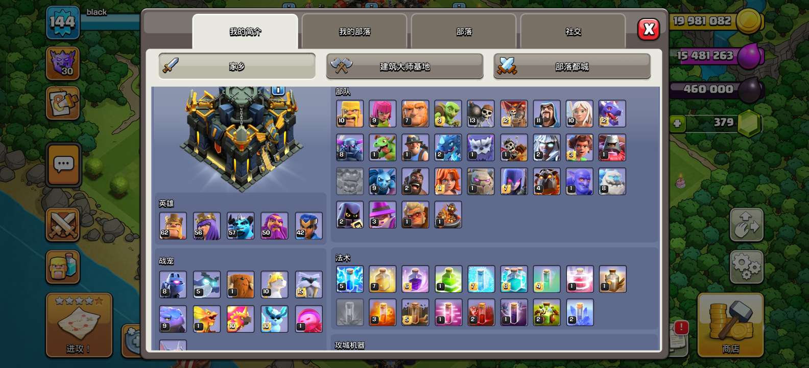 部落冲突【国际服】17本主流兵种基本升满了,王等级高,关键宠物也都快满了,史诗装备齐全,可换绑也可送未实名网易邮箱