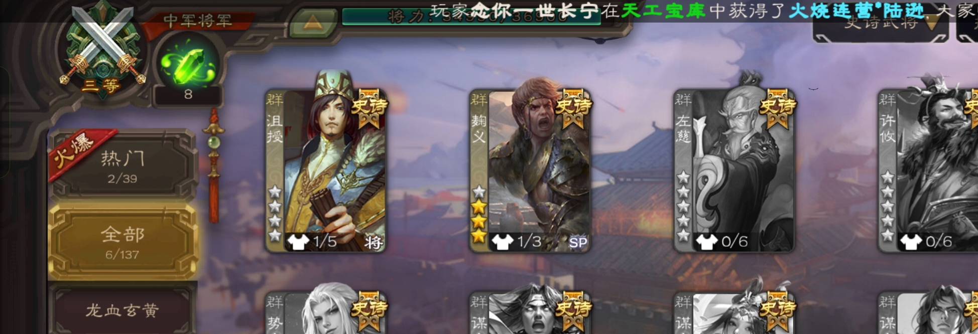 史诗武将数量:
