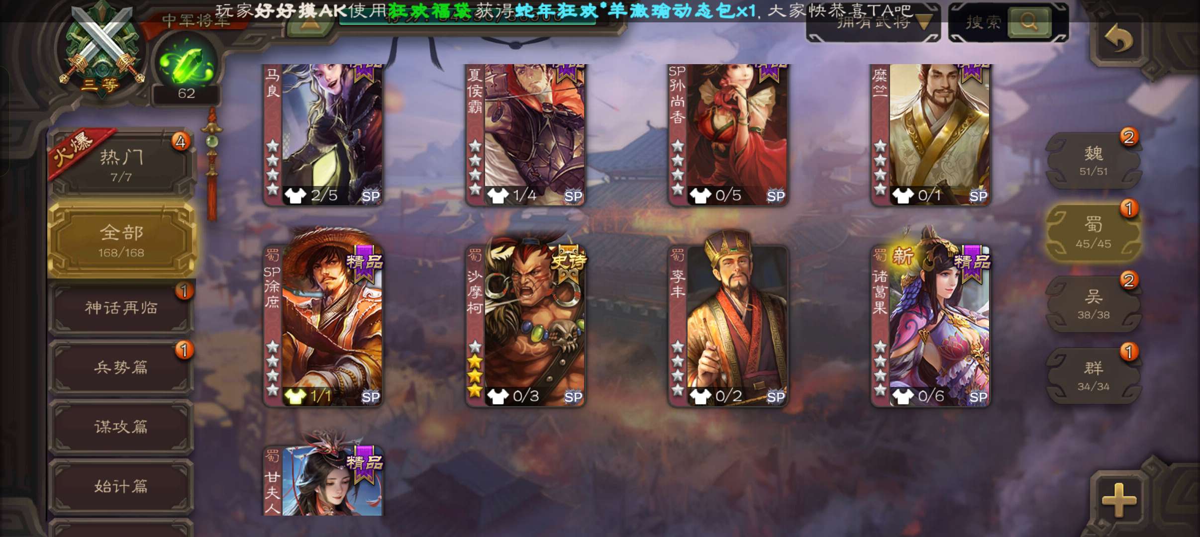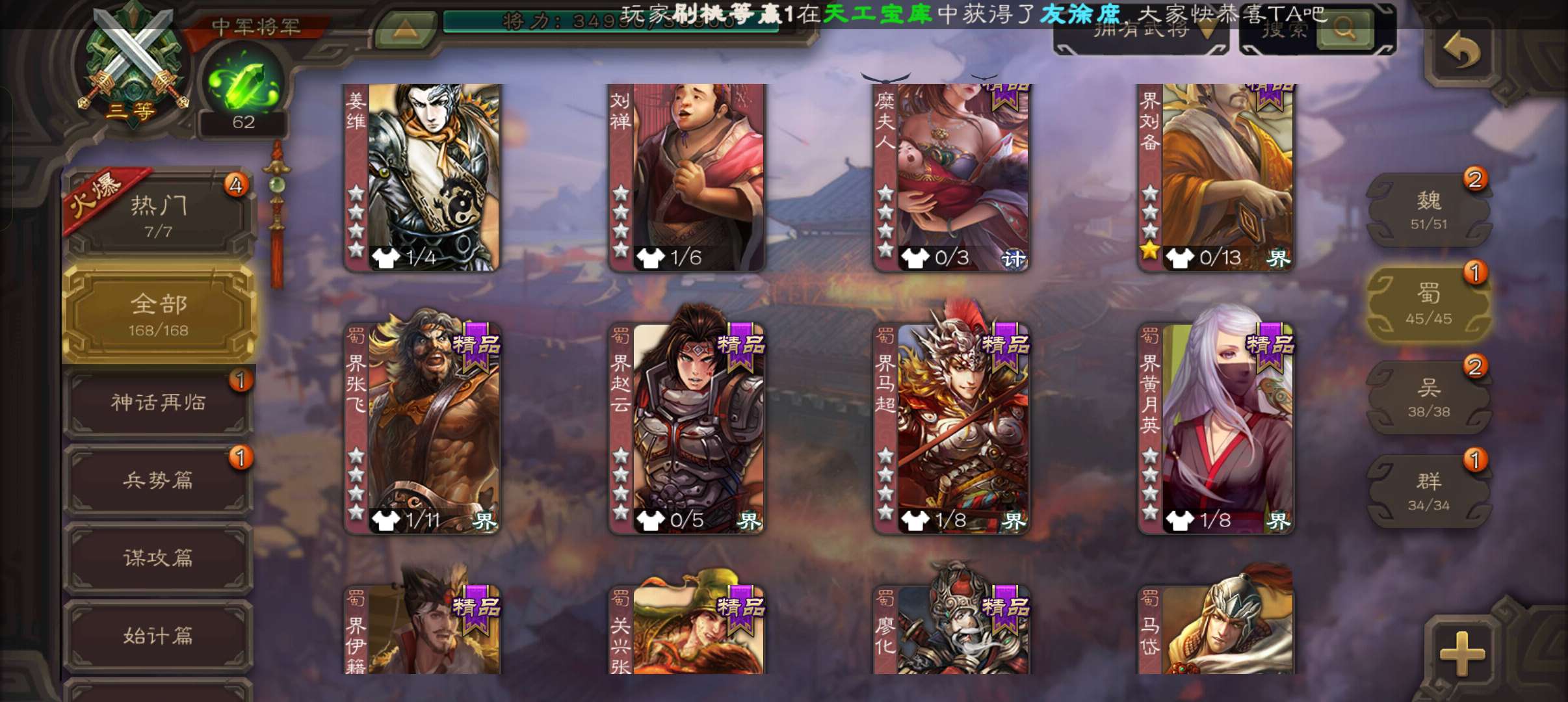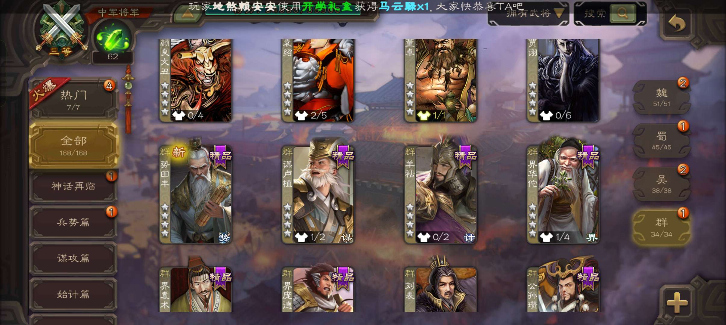 6史诗中军将军6万豆,回廊动白马乌鸦动界钟会沙摩柯神吕布沮授程昱,谋韩当谋卢植羊钴袁涣甘夫人168将