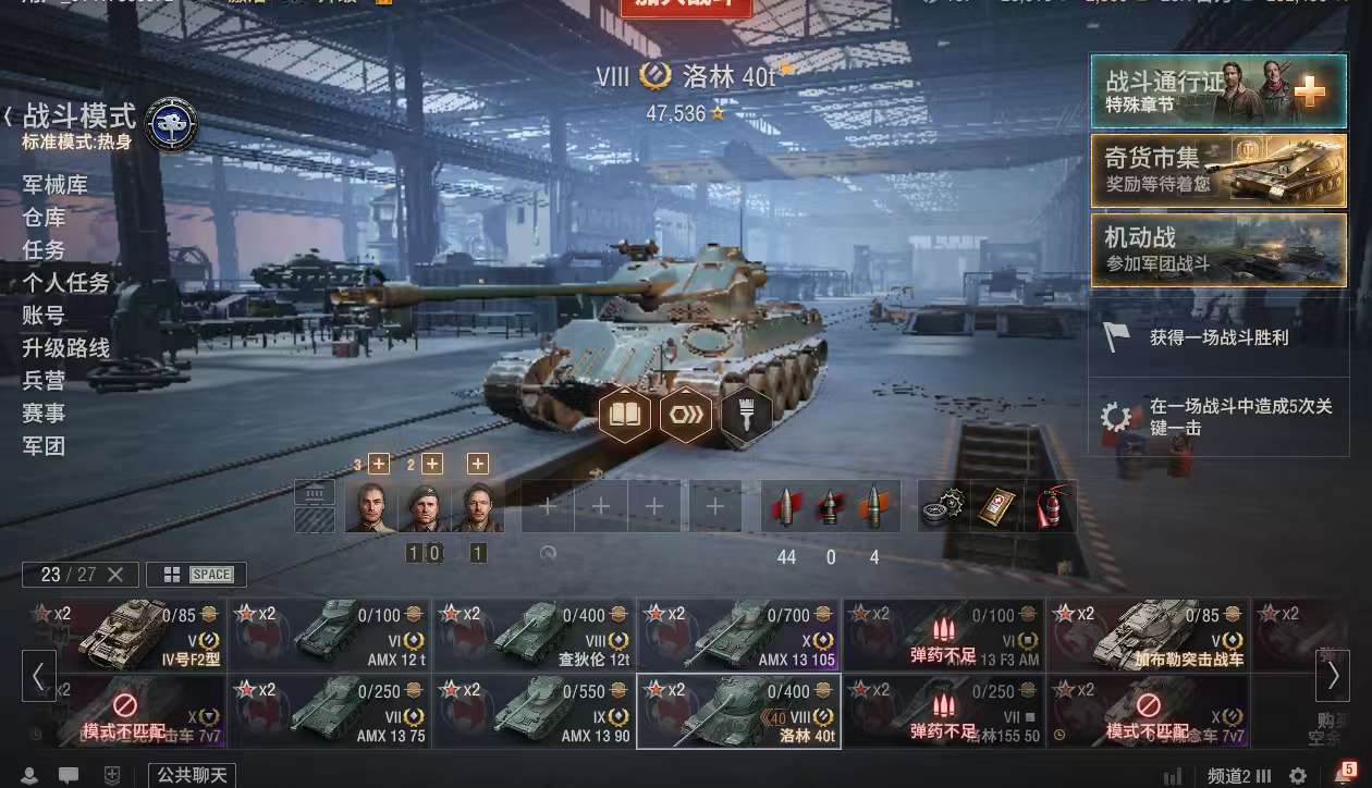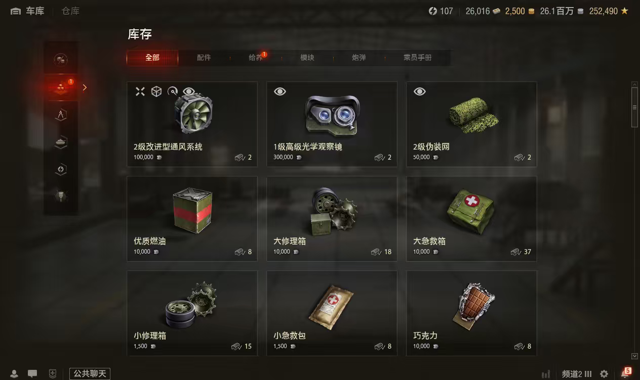 银币2600万、个人储备107个、债券26000、全局25万、金币25001辆10级车:AMX13