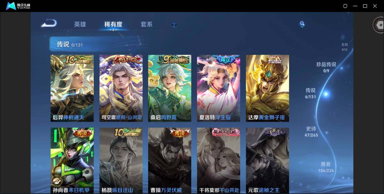 实名: 可修改 贵族等级: V6 英雄数: 125 皮肤数: 200 星传说: