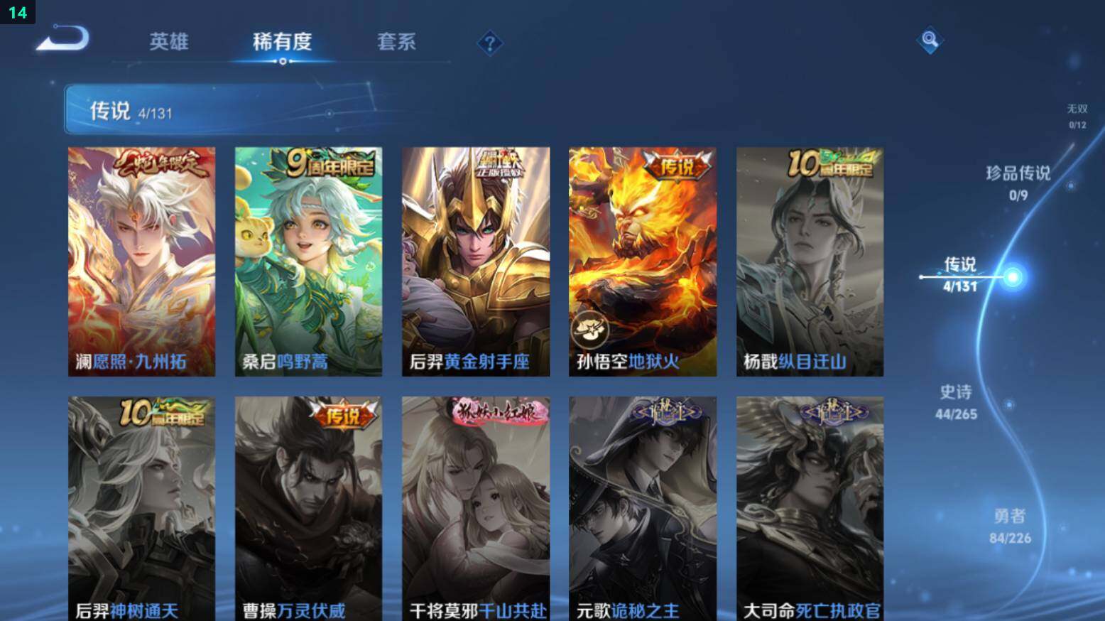 【传说】:澜愿照九州拓,桑启鸣野蒿,后羿黄金射手座,孙悟空地狱火