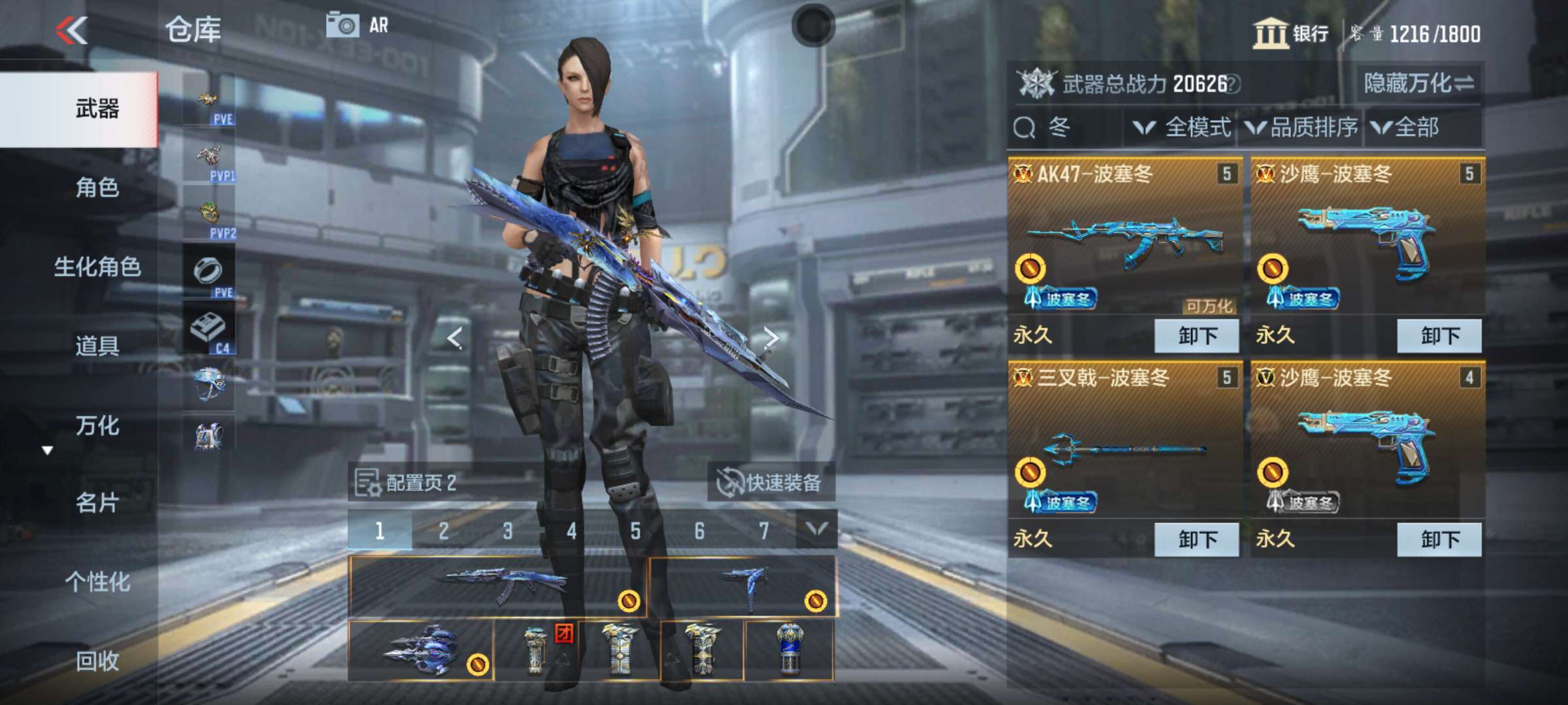 生化号,风神翼龙套装,波塞冬套装,两把普通cop,两把王者武器,王烈,王神加冰皮,暂无二次,介意勿扰