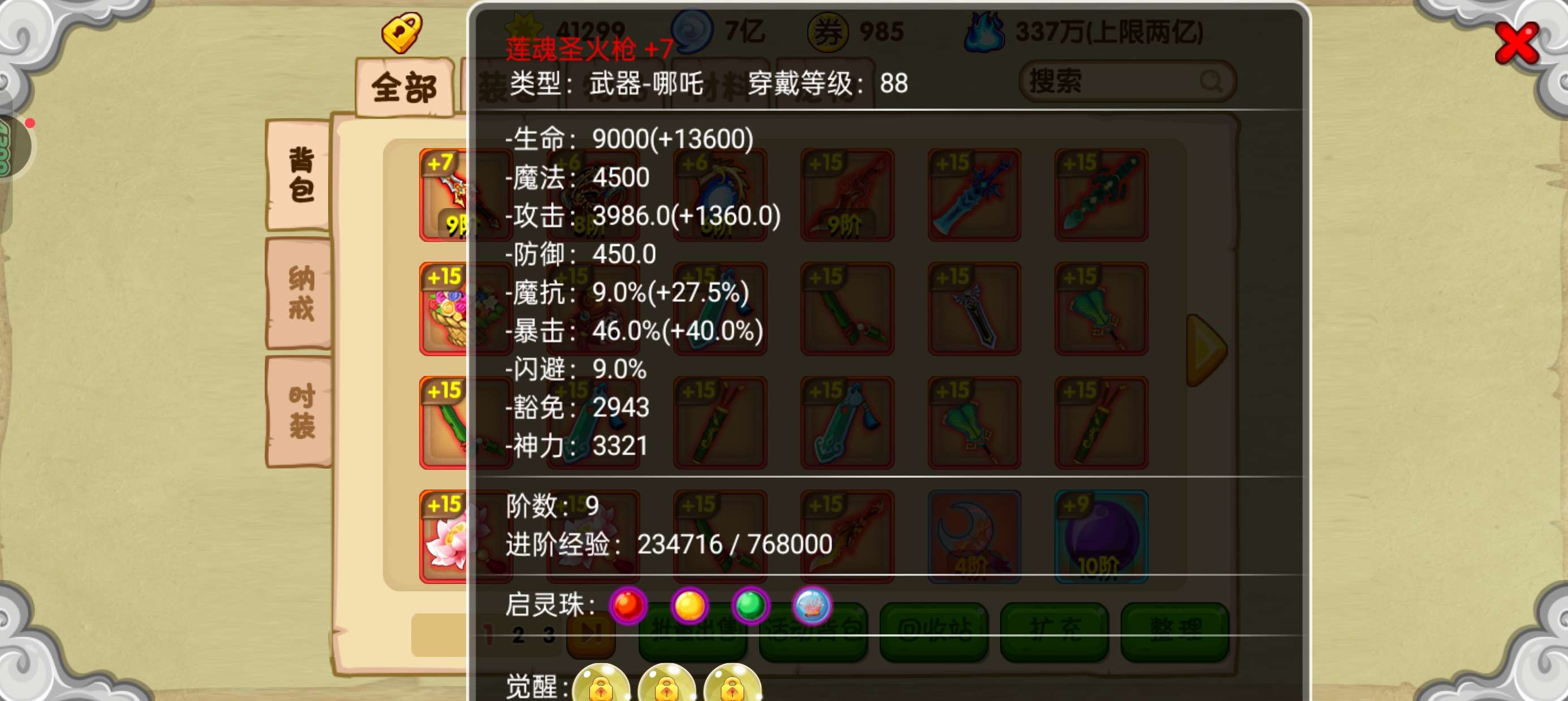 氪金3千以上角色装备武器,衣服,饰品,全部都是史诗珠子已经破120满属性每个角色战力都有60万以上,
