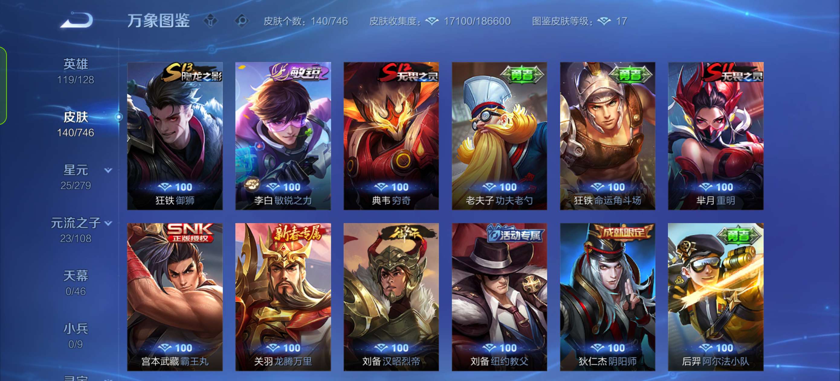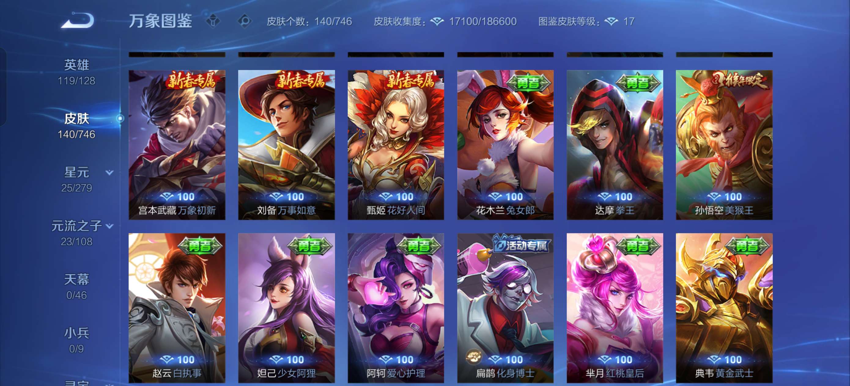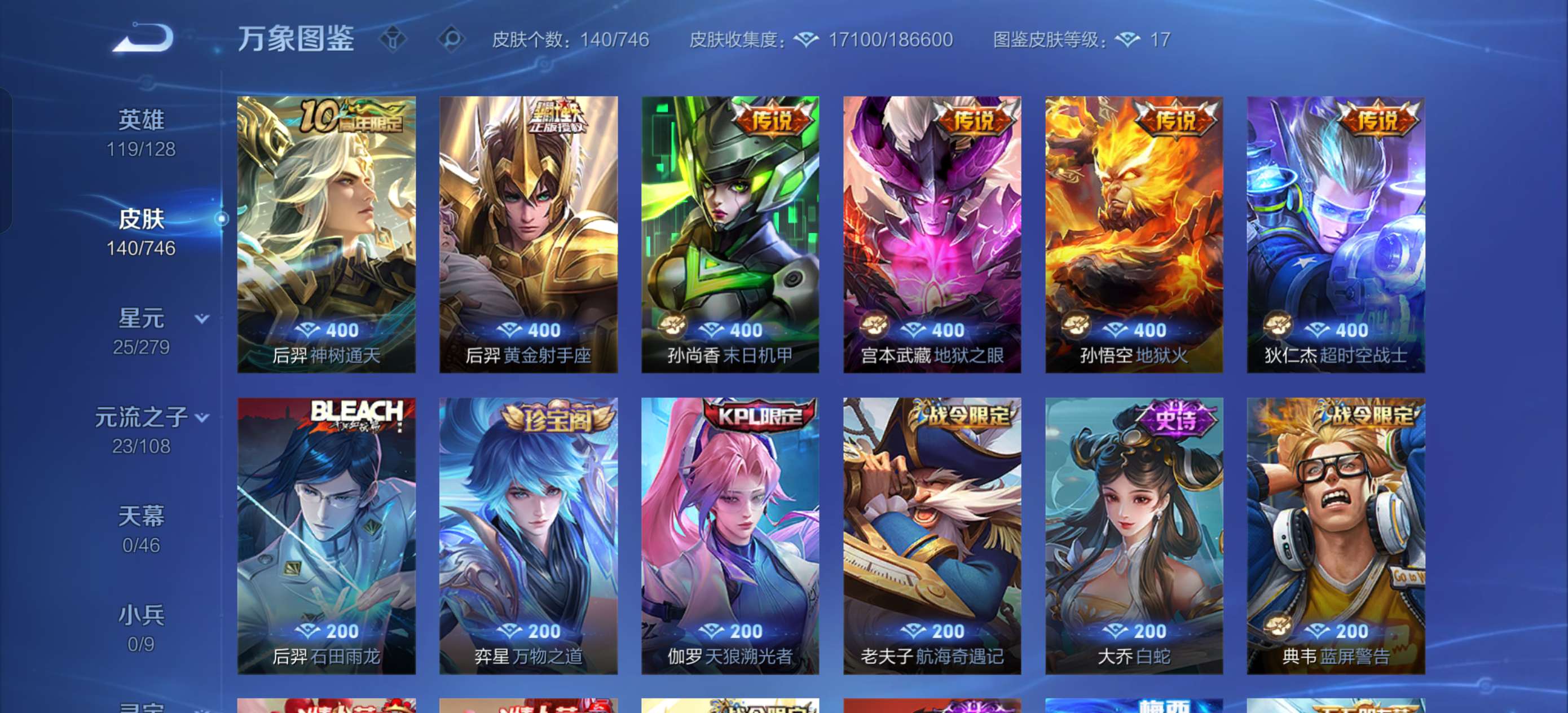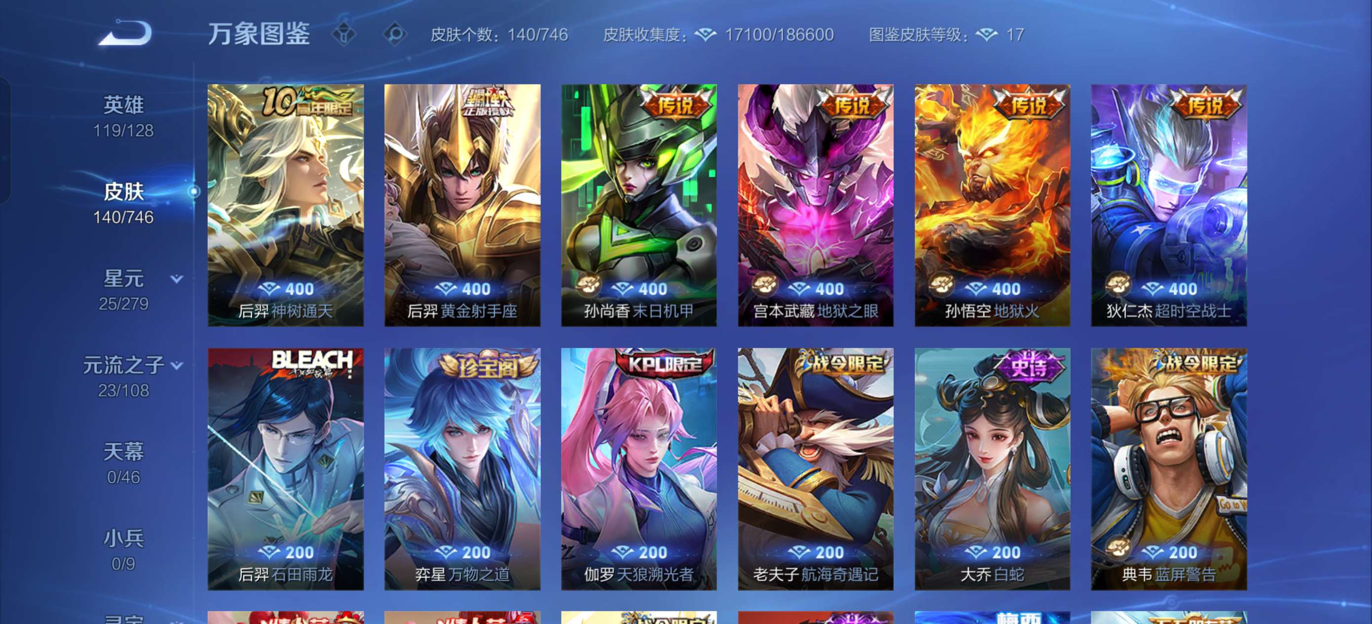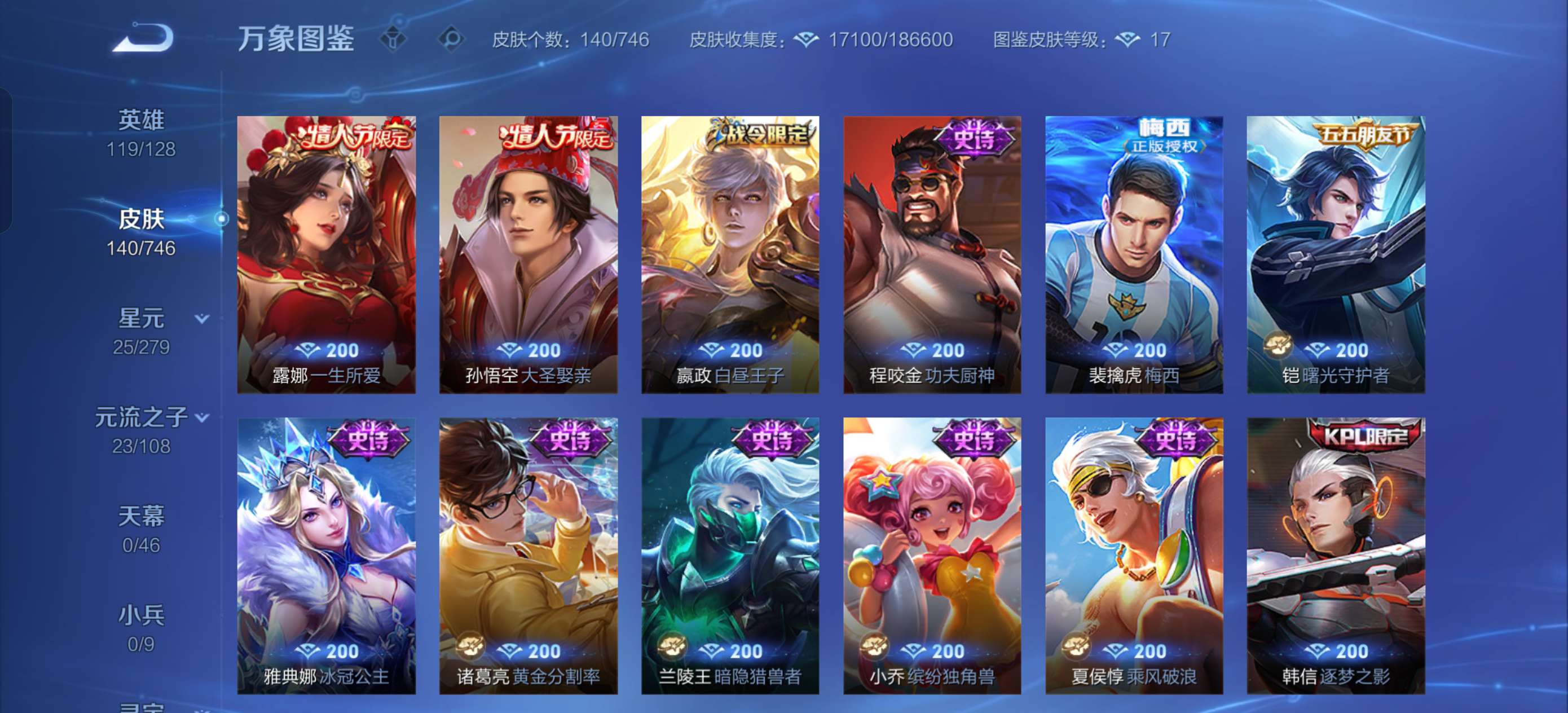 最高绝世十七星,和平很多老款热门皮肤都是当时的顶流,王者有梅西很多老皮肤荣耀水晶335