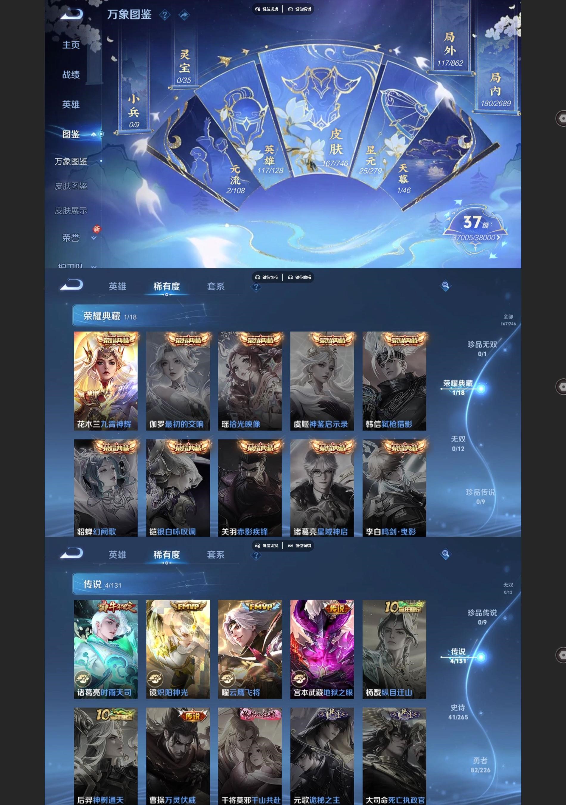 [王者荣耀]V71典藏4传说41史诗167皮肤永恒钻石V