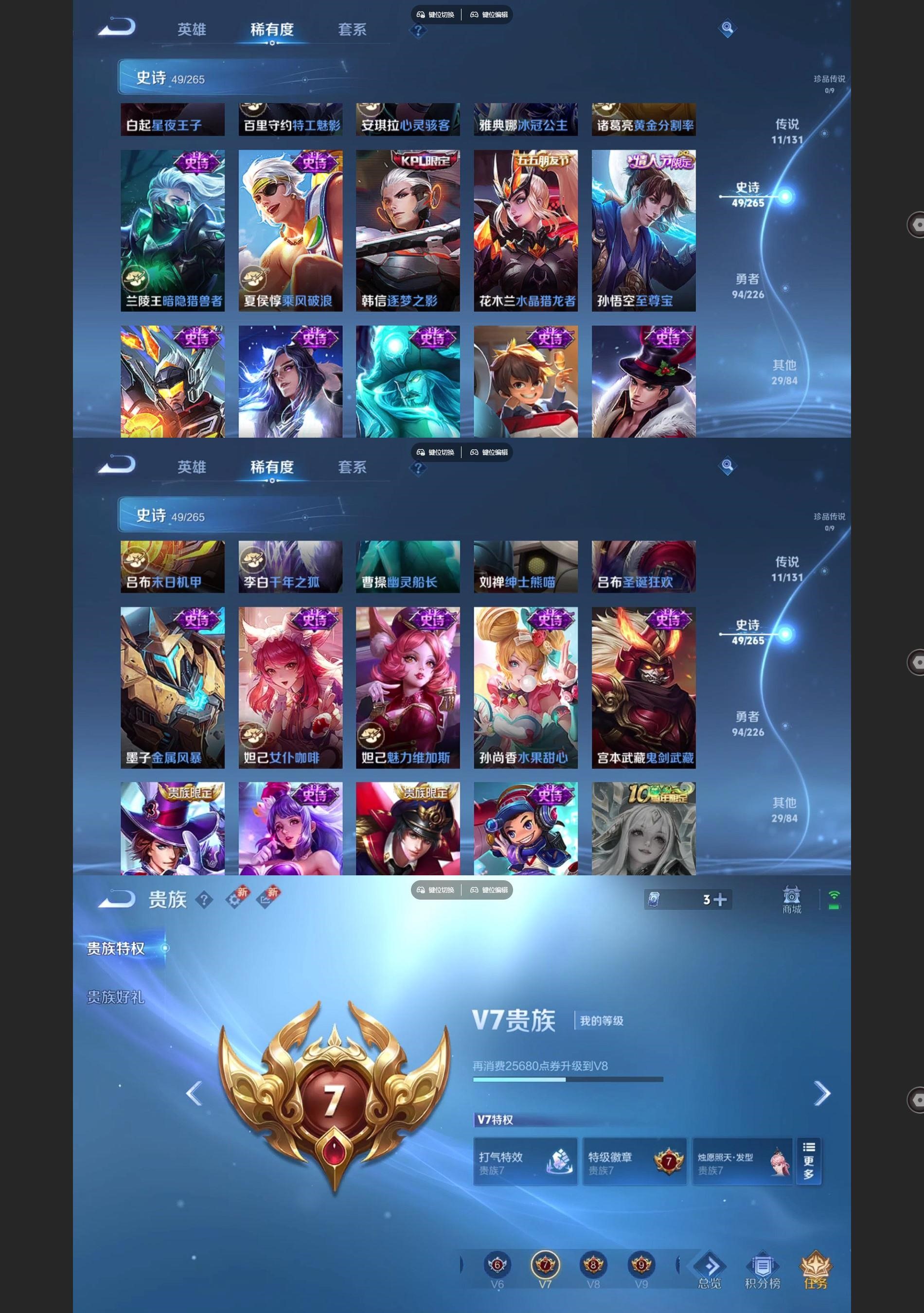 [王者荣耀]V711传说49史诗183皮肤永恒钻石I