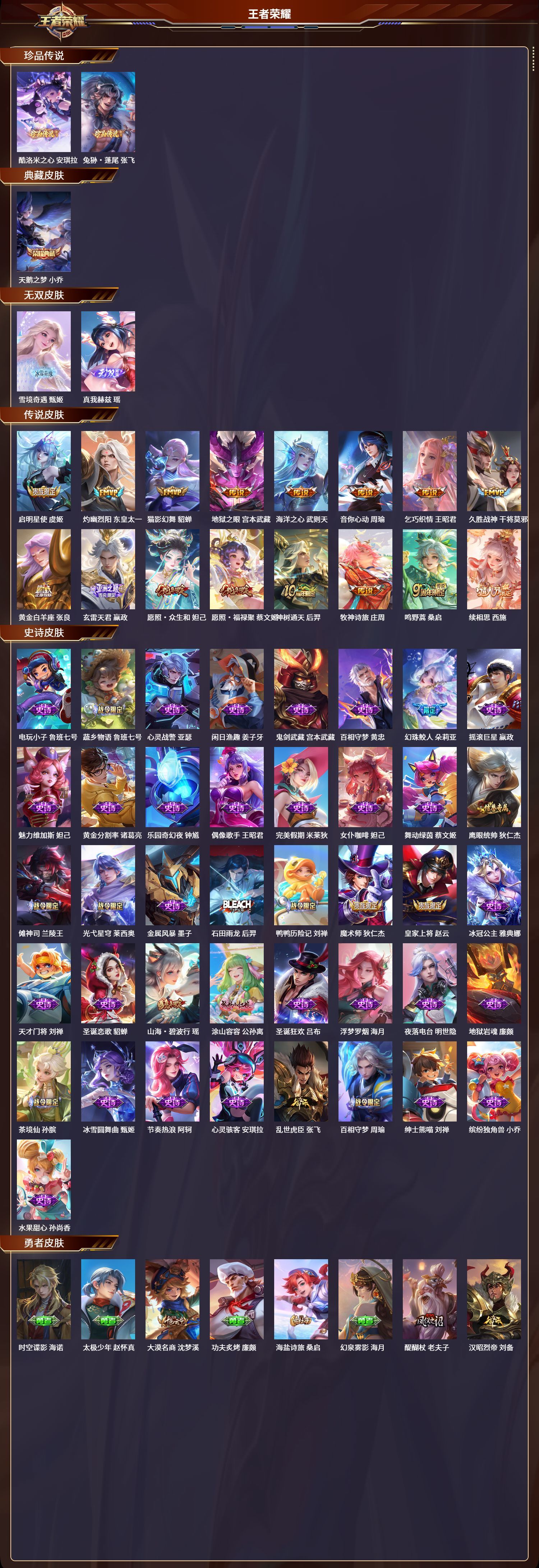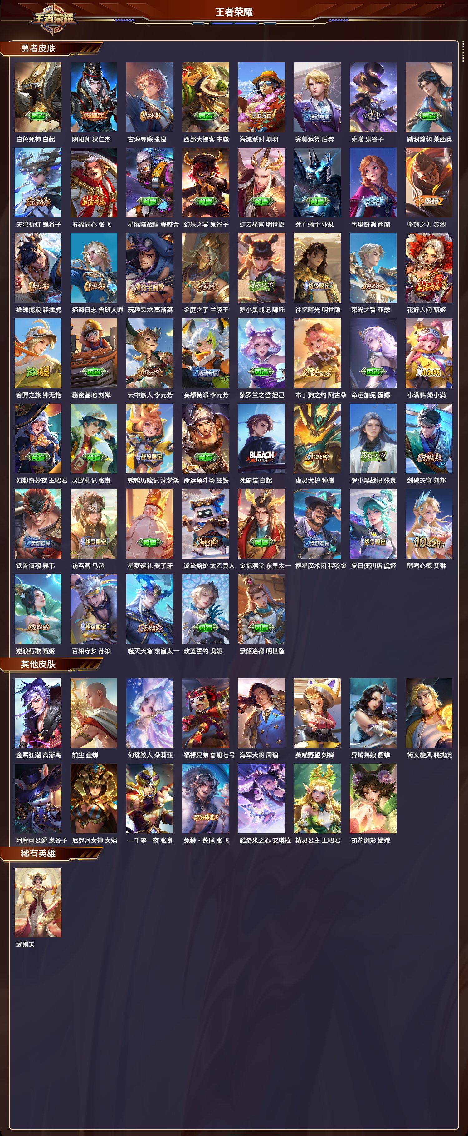苹果v/最强王者/135皮肤/127英雄/1典藏/0珍品无双/2无双/2珍品传说/16传说/41史