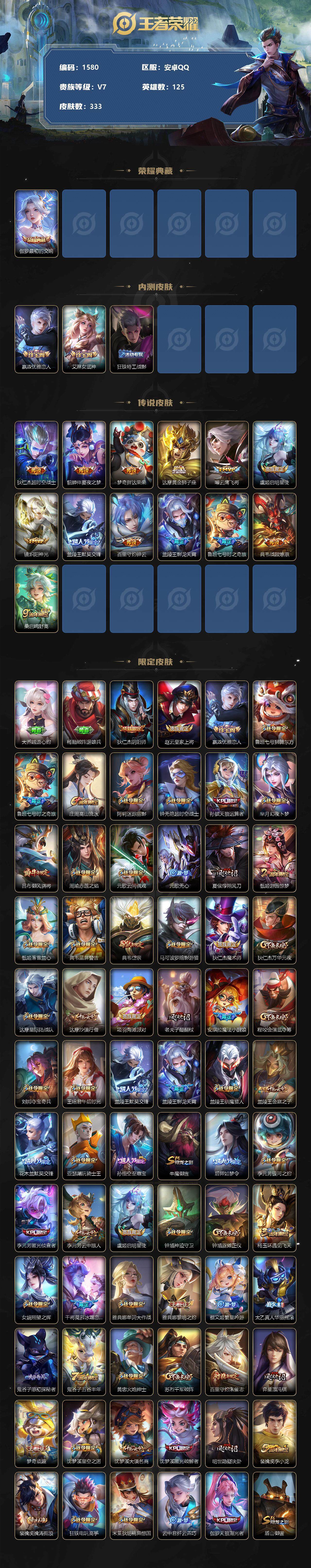 V7-永恒钻石IV段位-125英雄-333皮肤-1典藏-0珍品无双-0无双-0珍品传说-13传说-92史诗