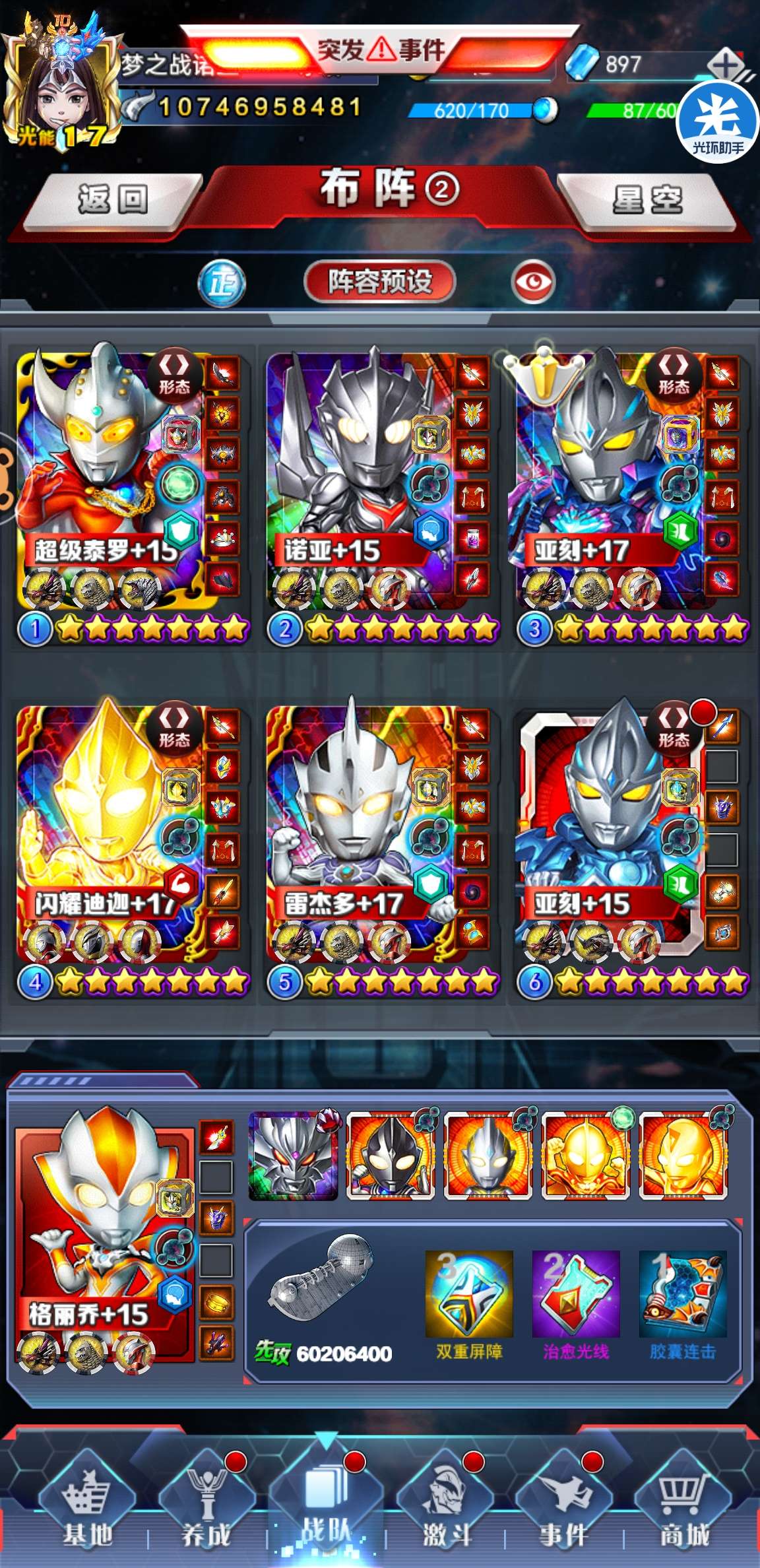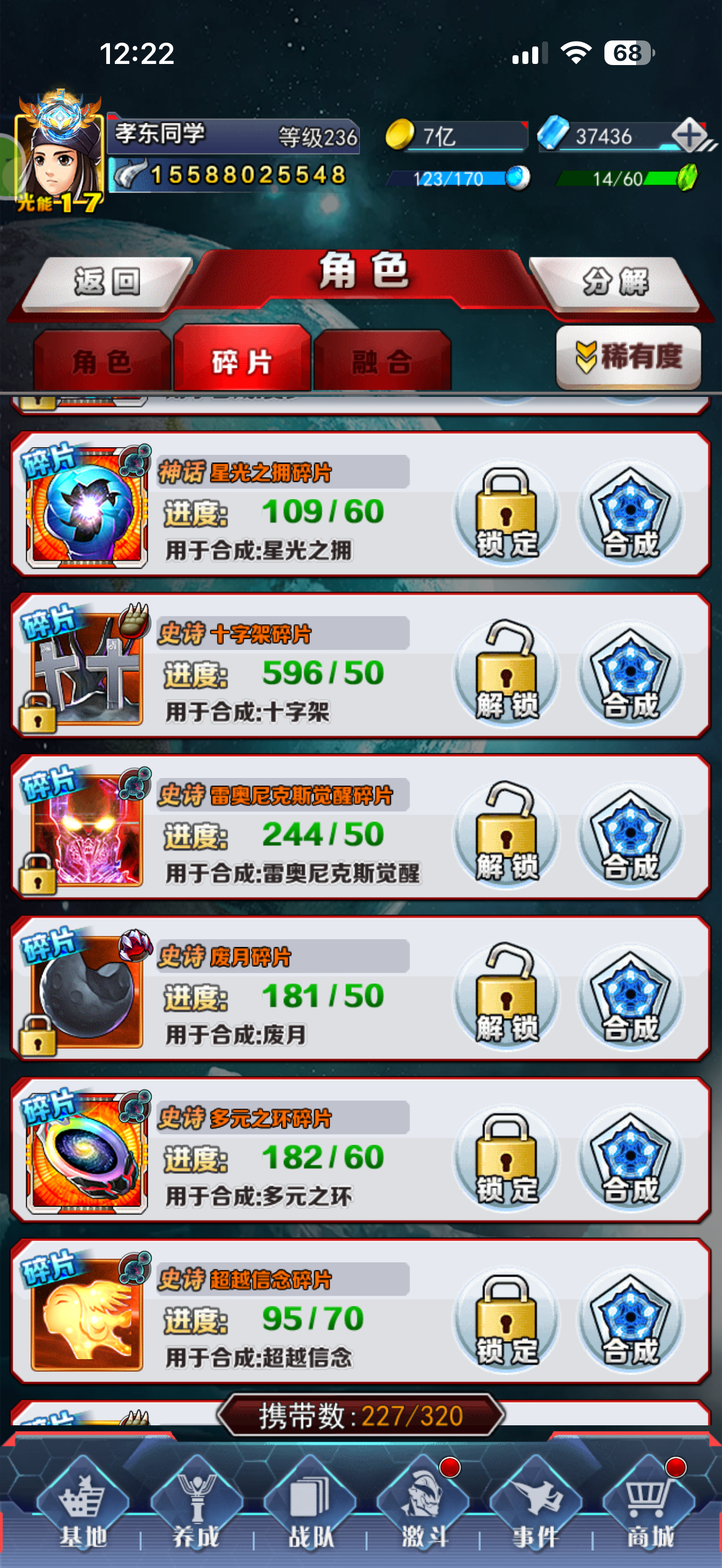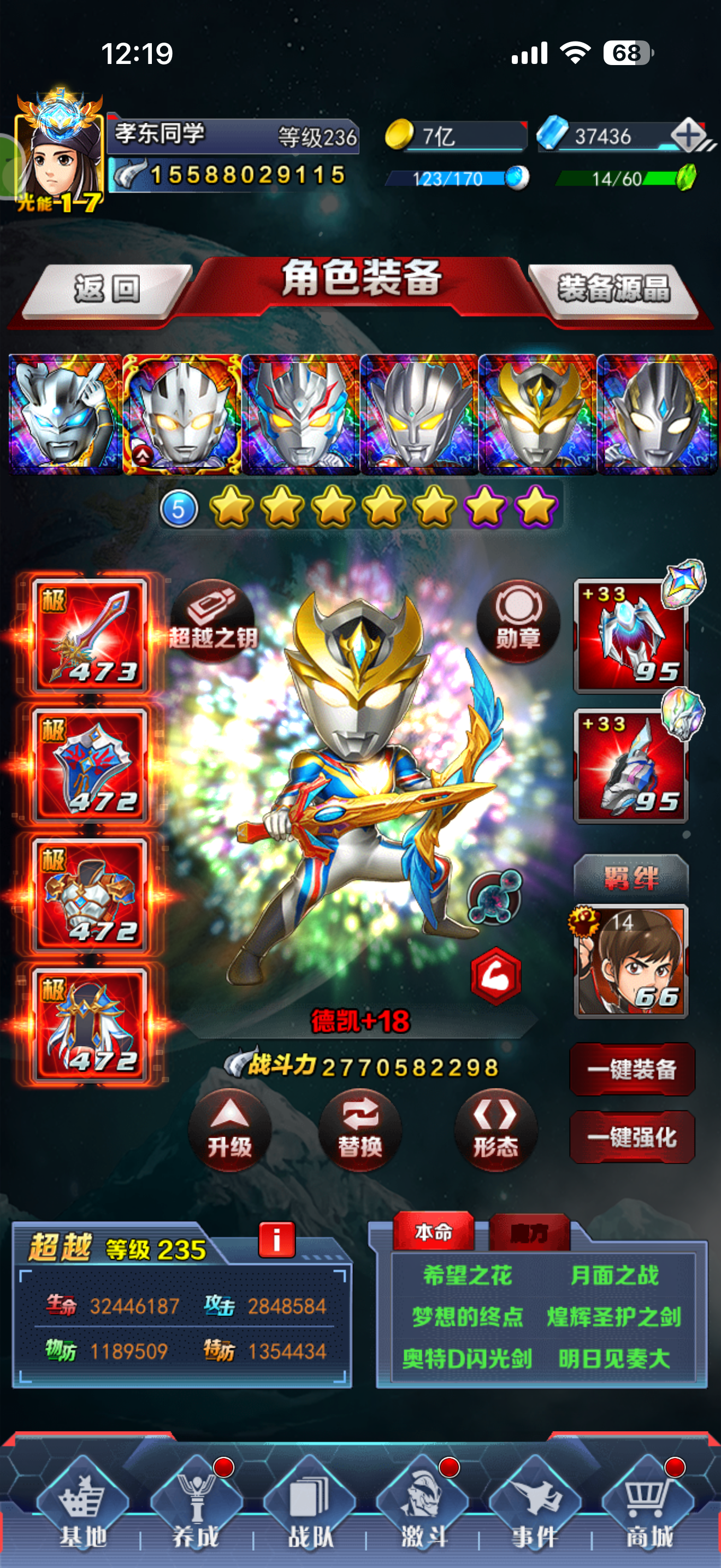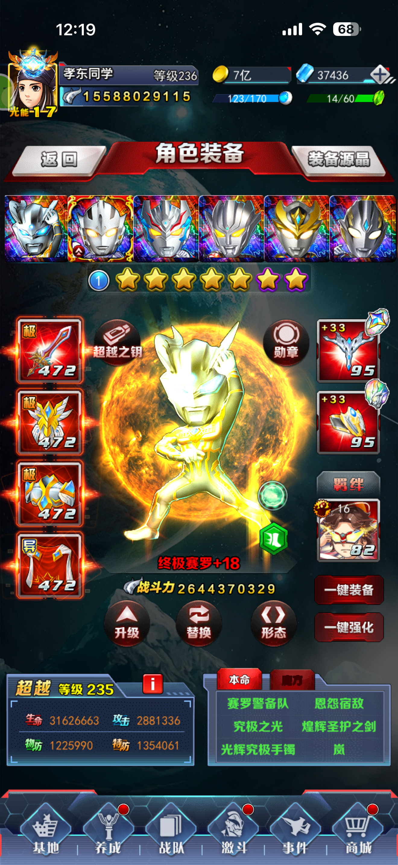 iOS可换绑,V17,第一战队,不缺进阶材料,常年明星赛前三名。每天保底1000光源,后续攒钱买红变就能玩