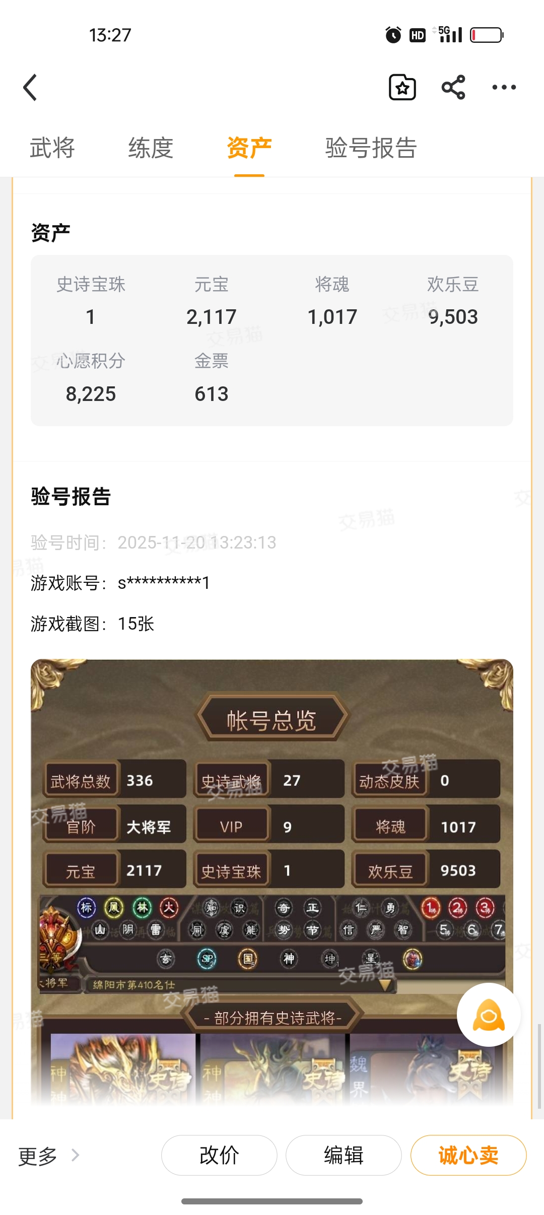 通过App,与卖家商议价格及保险,并向卖家索要账号最新截图,确认后下单购买。