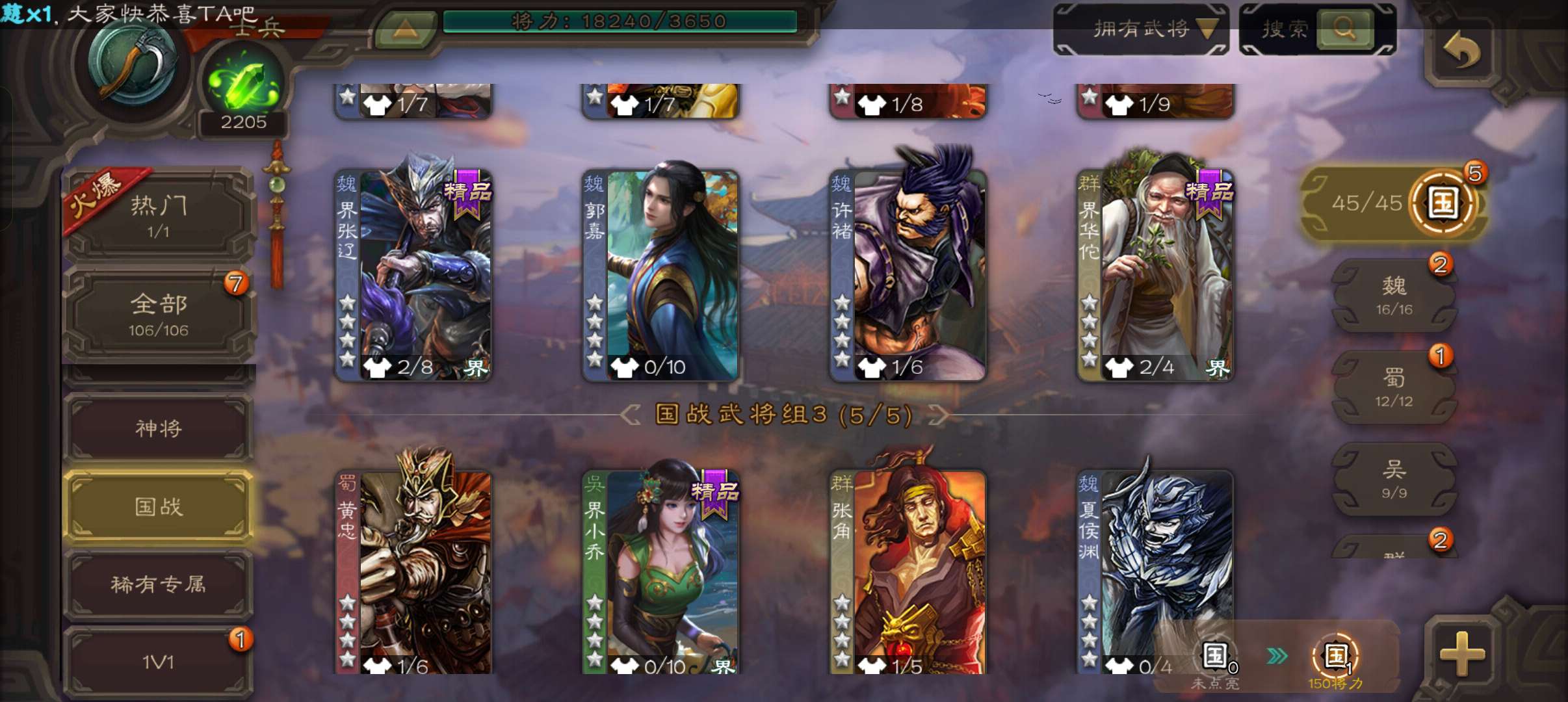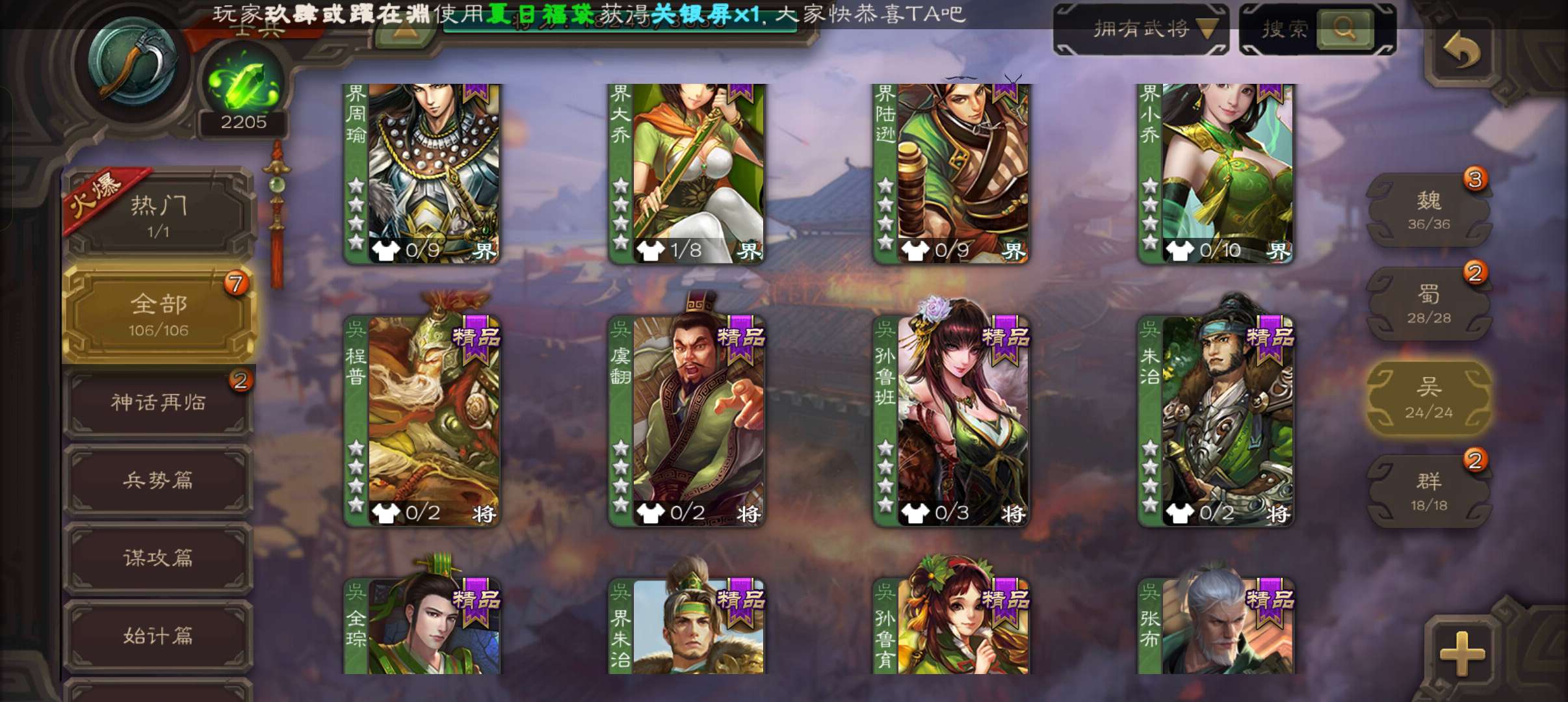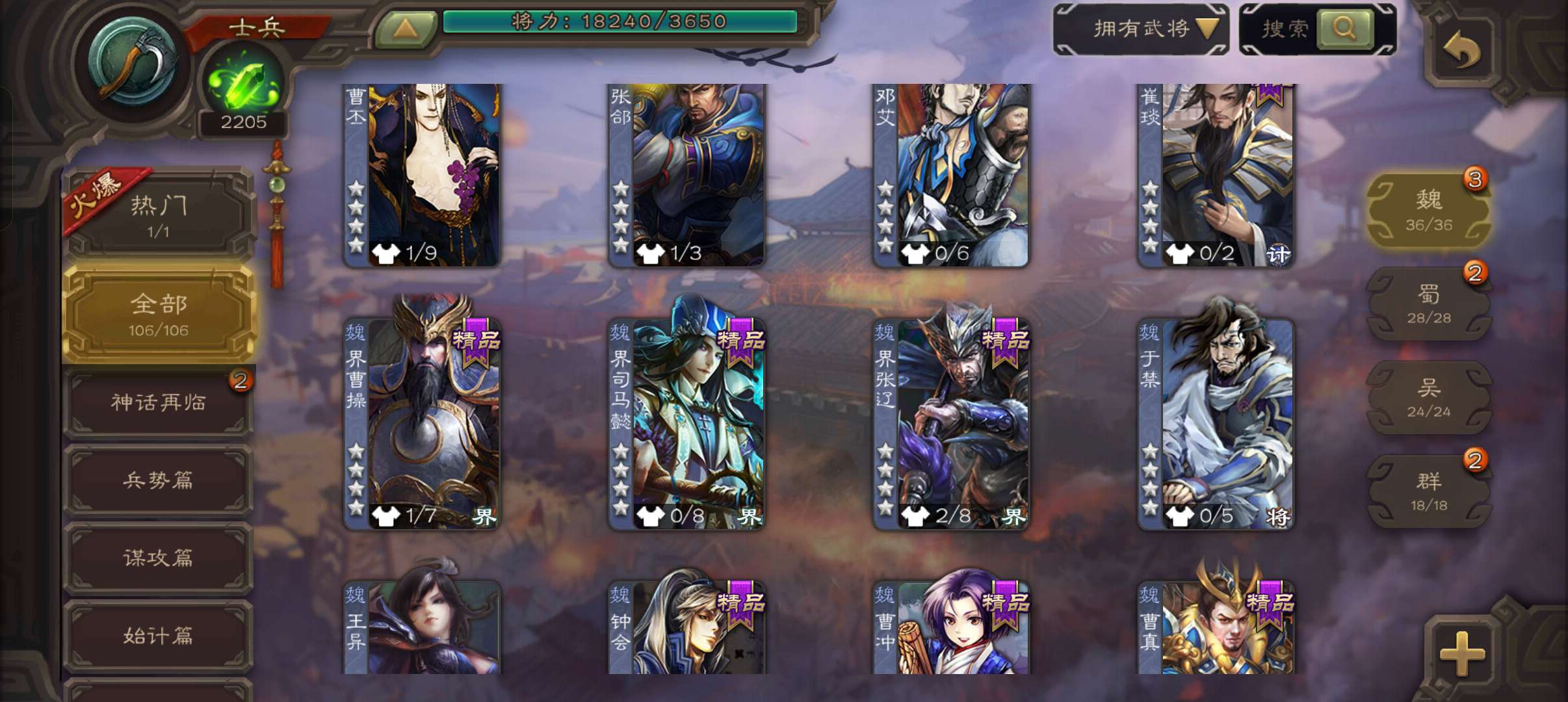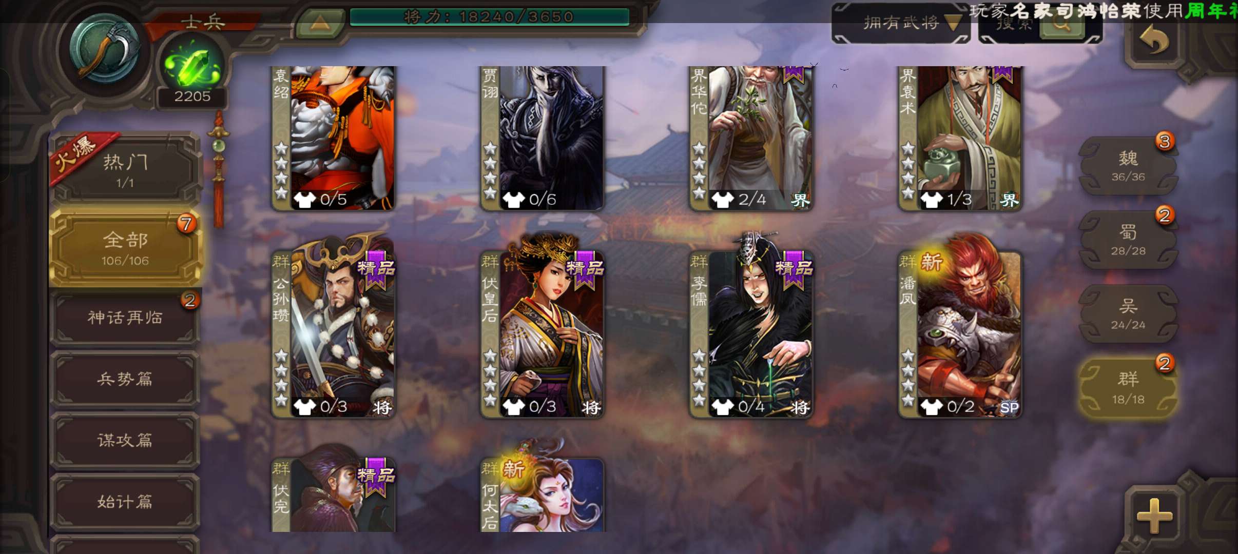三国杀【安卓官方】士兵,2200魂4.7万羽毛4万豆,界钟会谋马超谯周杨修4史诗,甘夫人崔琰张布106将
