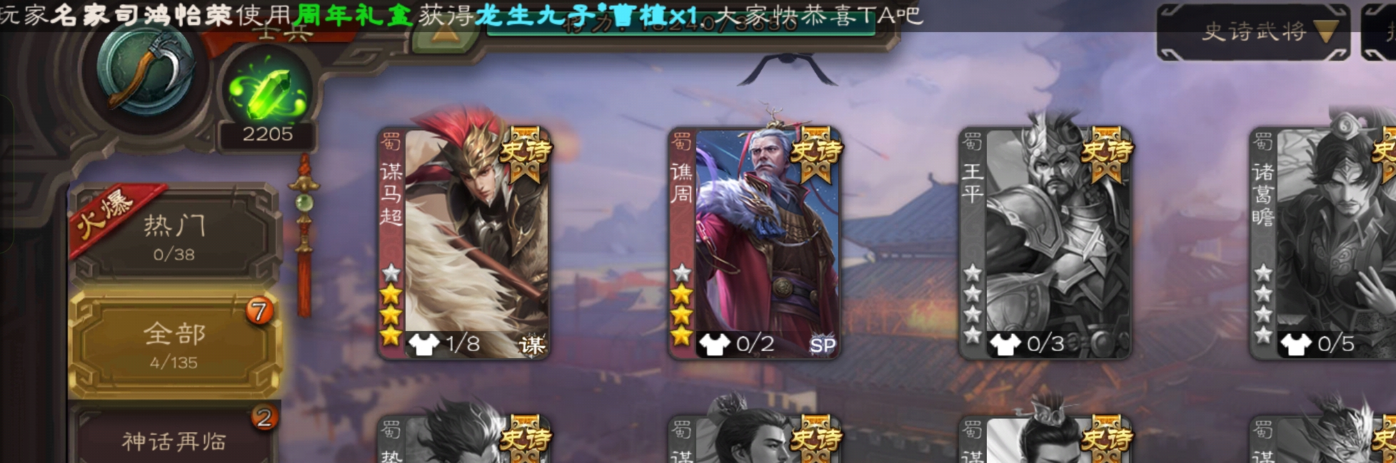史诗武将数量: