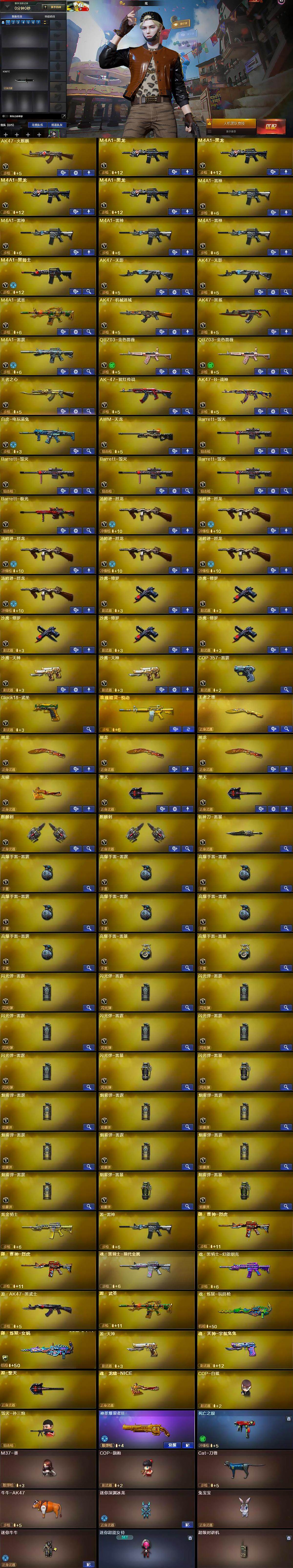 【热门武器】:QBZ03-金色蔷薇*2,死亡之眼,白虎-电玩蓝兔,金色小号,Cat-刀锋,牛牛-AK47,M4A1-黑骑士,汤姆逊-烈龙*6,毁灭-孙三炮,COP-白鲨,沙鹰-修罗*5
